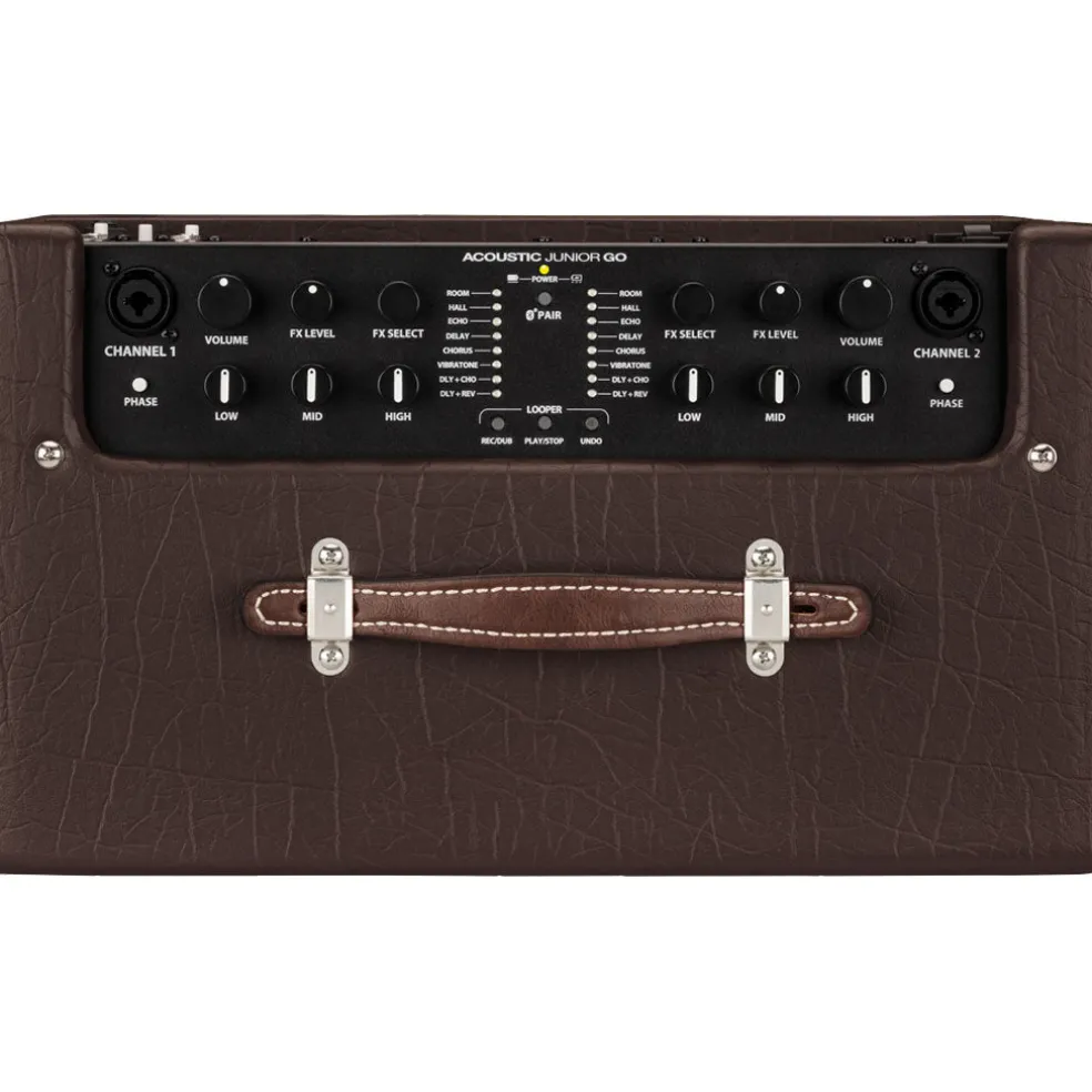 The Acoustic Junior GO amplifier delivers full, natural, best-in-class performance for acoustic-electric guitar and vocals. This powerful, portable system has two channels designed for instrument or microphone use, each with studio-quality effects. Other convenient features include Bluetooth wireless audio streaming and an onboard 90-second looper perfect for solo shows. And its rechargeable battery means that you can unplug it from the wall and take your music anywhere!