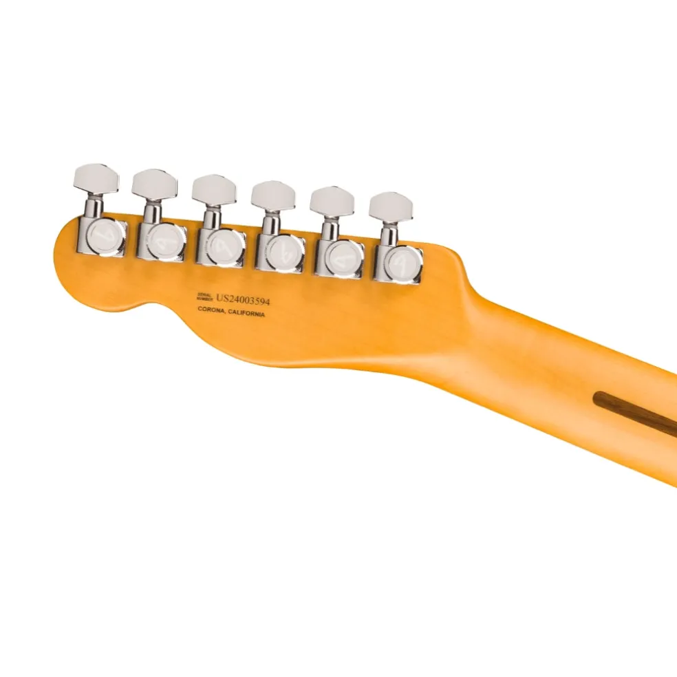 The Fender® American Ultra II Telecaster® features a select alder body with sculpted body contours. For effortless playability, the quartersawn maple neck features our Modern D profile and smooth Ultra Satin finish. Ebony or quartersawn maple 10”-14” compound radius fingerboards feature Ultra rolled edges, medium-jumbo frets, Luminlay® side dots and Graph Tech® TUSQ® nuts. The tapered neck heel and sculpted body contours allow unparalleled access to the higher register.