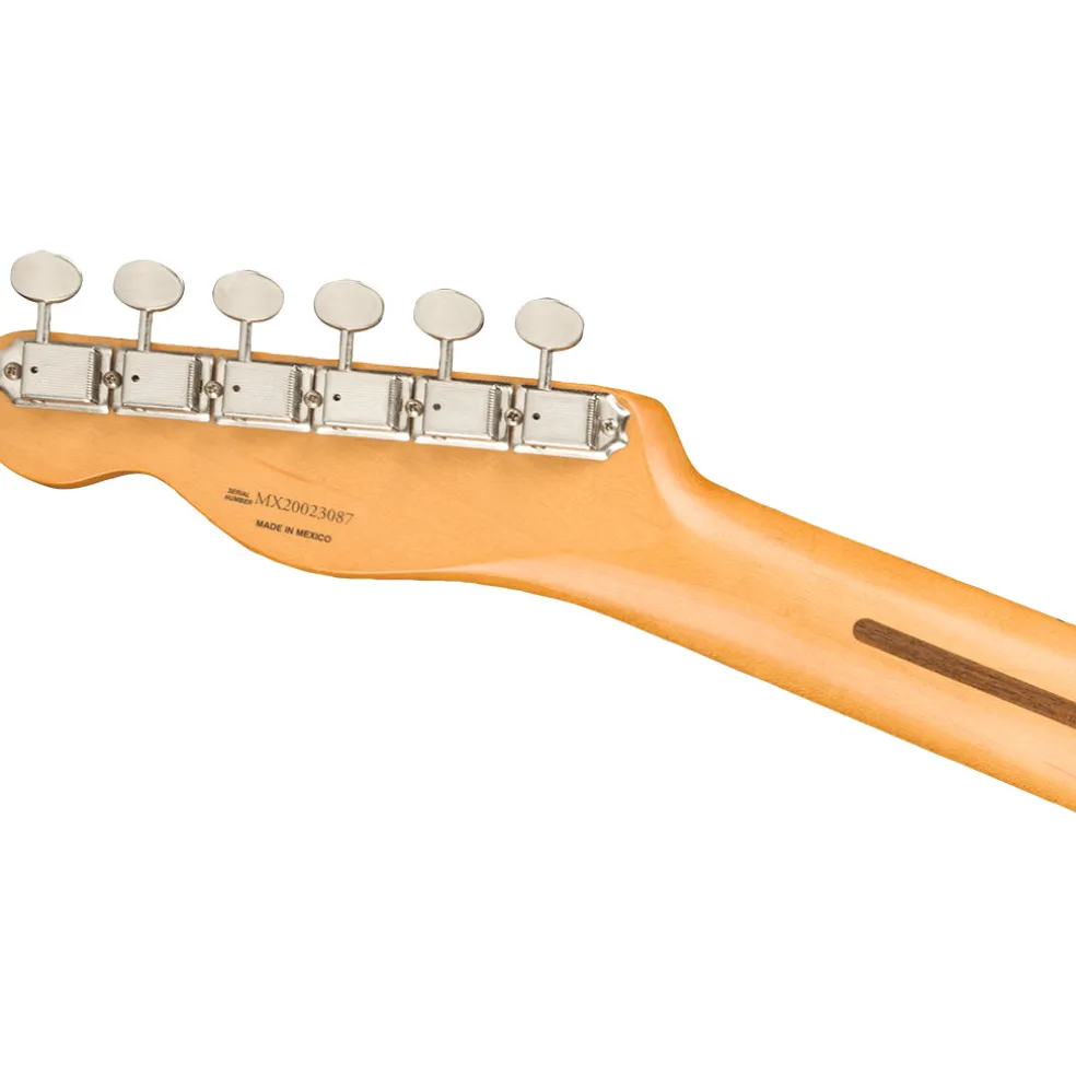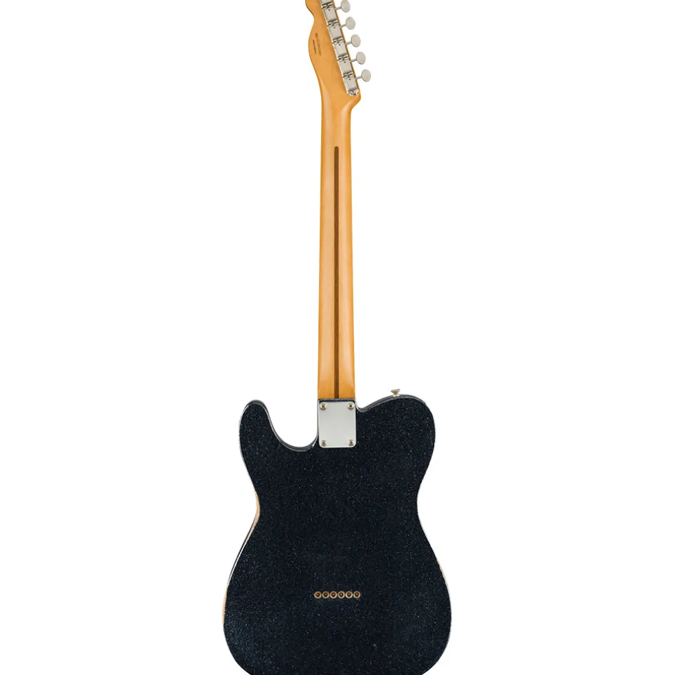 The Brad Paisley Esquire features a paulownia and spruce body finished in a stunning black sparkle Road Worn lacquer, a custom Enhanced “V”-shaped maple neck with a 9.5” radius fingerboard and custom pickups—including a Brad Paisley signature Seymour Duncan Secret Agent neck pickup hidden under the black and silver paisley pickguard.