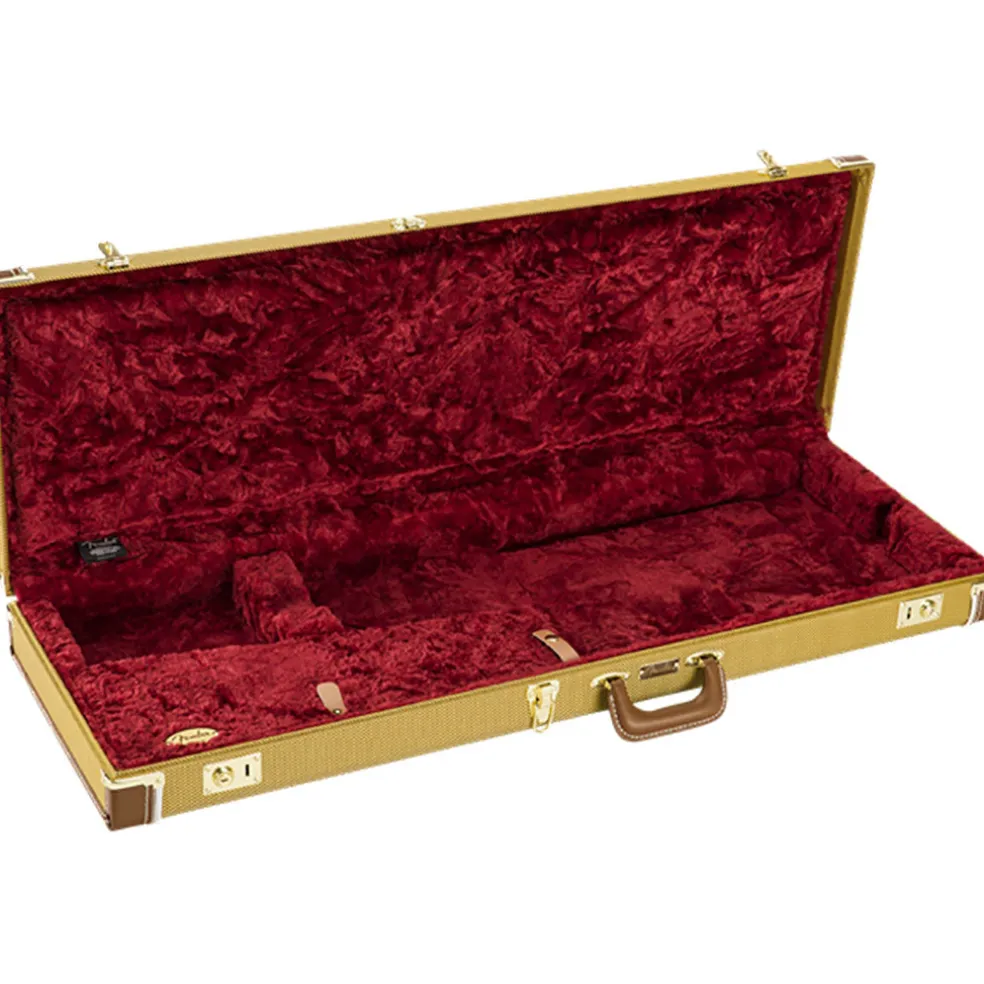 Classic Series wood cases are a stylish and dependable way to protect your Fender® electric guitar. Crafted with road-reliable materials, this 3-ply hardshell wood case boasts a vinyl wrapped steel carry handle and draw latches in addition to triple chrome-plated hardware throughout the case. A soft crushed acrylic plush interior lining ensures your guitar remains scratch and damage-free, while a spacious accessory compartment offers plenty of room for spare strings, picks, tuners—or whatever small items you wish to carry with you—with lasting style and peace of mind.