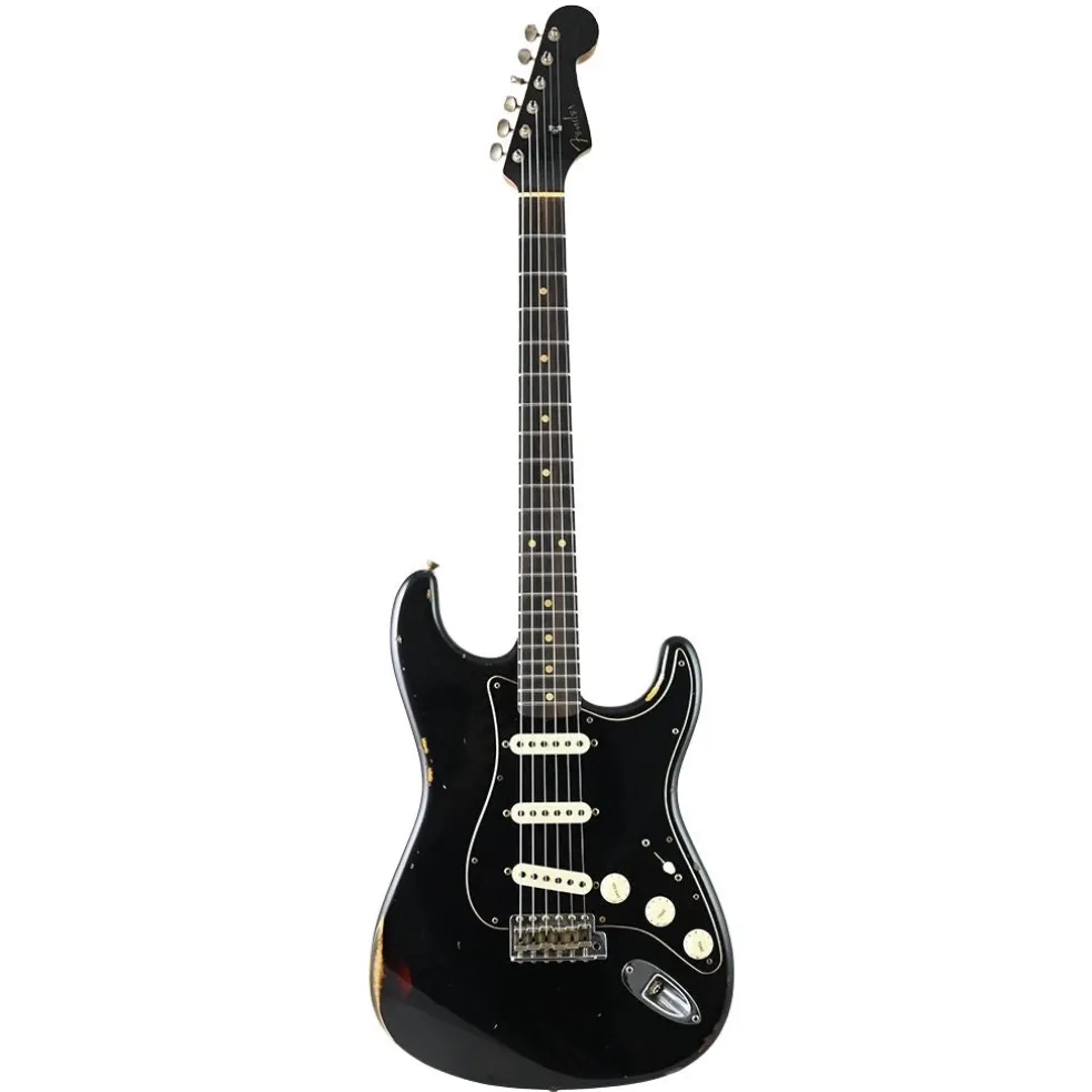 What matches an all-black guitar? A super dark, flat lam rosewood fretboard of course! This Strats gets the name from Dual-Mag II pickups, with a RWRP (reverse wound, reverse polarity) middle position, and roasted alder and roasted maple body and neck respectively. The painted headstock ties this whole guitar together aesthetically, while the jumbo frets make for a more modern playing experience.