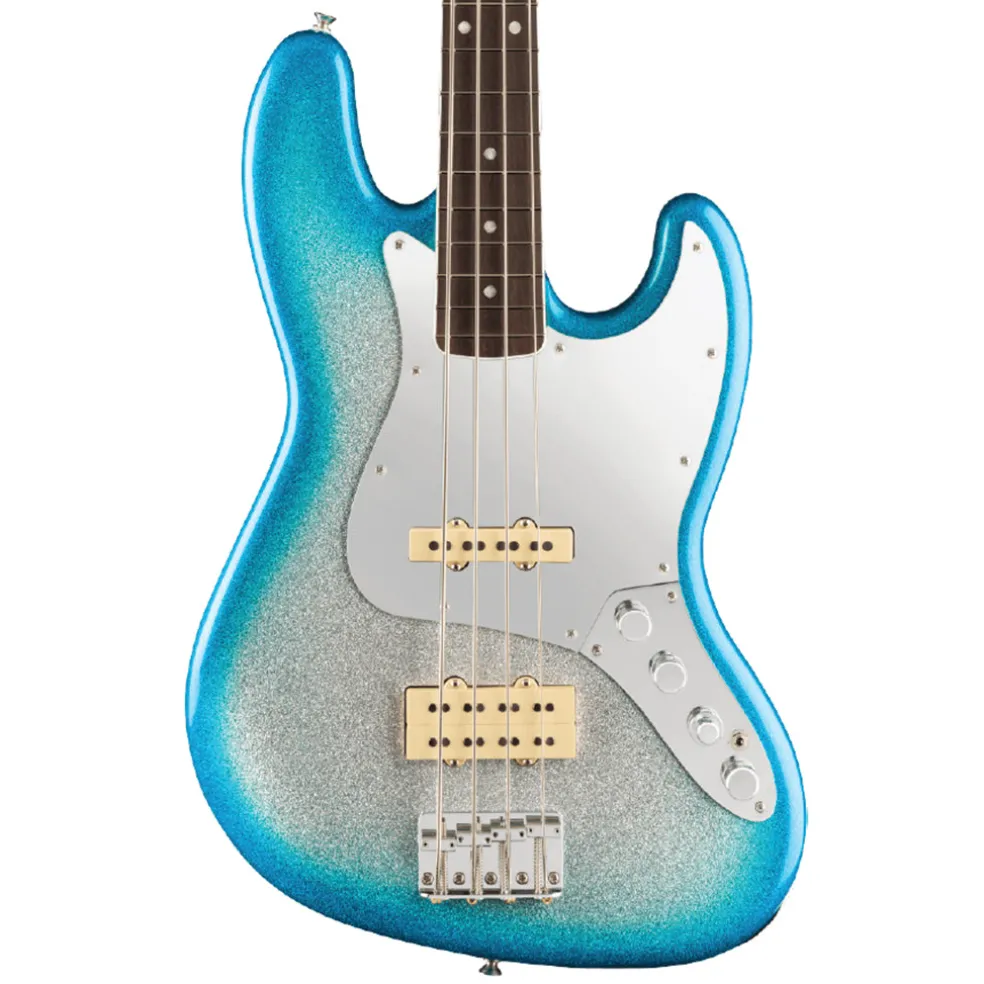From the dazzling Sky Burst Sparkle to the gleaming chrome hardware and mirrored pickguard, every detail on this Jazz Bass echoes Blu’s bold artistic vision. The offset ash body is chambered to keep this bass as lightweight and comfortable as possible. The satin finished maple neck, bound 9.5ā rosewood fingerboard and vintage tall frets provide smooth playability. The Custom Blu DeTiger FireballĀ® bass humbucker and Player Plus Noiseless⢠Jazz Bass Pickups fuse vintage charm with modern punch. The bass also includes an 18V Player Plus preamp with 3-band EQ and active/passive toggle, great for sculpting your tone and ideal for capturing the funky snap and growl that defines Blu’s sound.