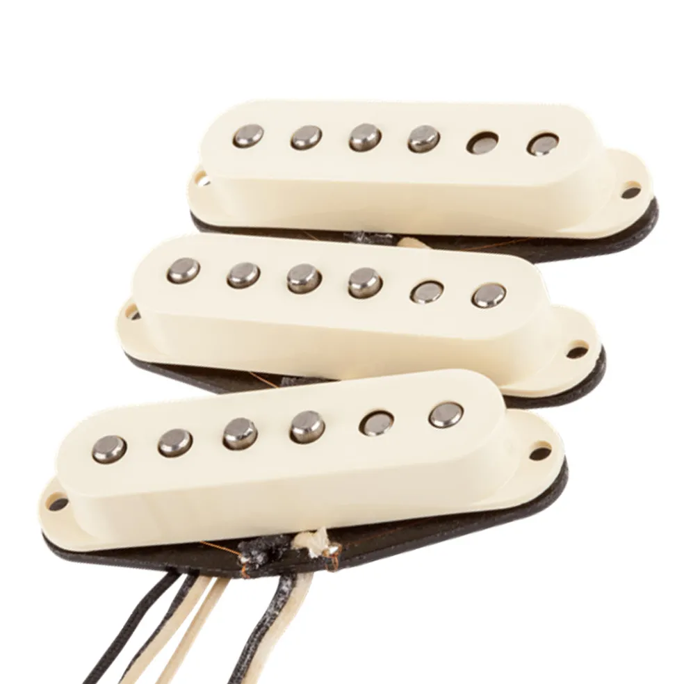 Fender Pure Vintage ’57/’62 Strat® single-coil pickups are reverse-engineered from a 1963 Stratocaster guitar. These pickups deliver vintage-Strat sound, feel and vibe, with glistening highs and warm lows. From vintage bobbin construction to genuine original-era cloth wiring, all Fender Pure Vintage pickups are wound to precise specifications for authentic, traditional Fender tone and performance.