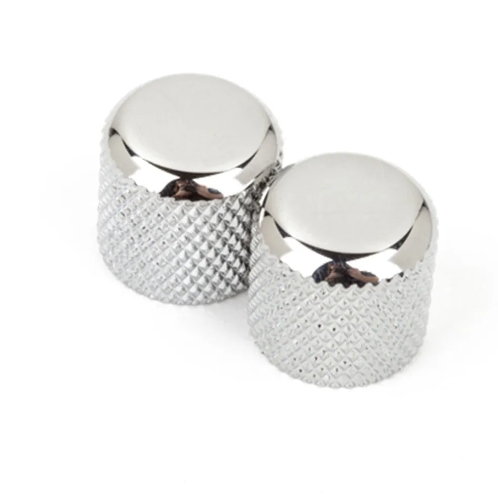 Set of two knurled domed control knobs with mounting set screws, designed to fit 1/4 solid-shaft potentiometers on most U.S.- and Mexico-made Telecaster and Precision Bass models manufactured from 1951-present.