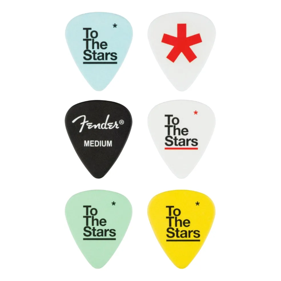 Whether you’re a fan of Tom DeLonge’s playing in Blink-182 or Angels and Airwaves, his impact on music and culture is out-of-this-world. Inspired by the distinct colorways of his iconic signature Strat® models, the Tom DeLonge To The Stars collection features designs in collaboration with the unique aesthetic of both brands. Featuring bold graphics and logos, the Tom DeLonge To The Stars 351 Celluloid Picks are the perfect plectrum to take your playing to new cosmic heights.
