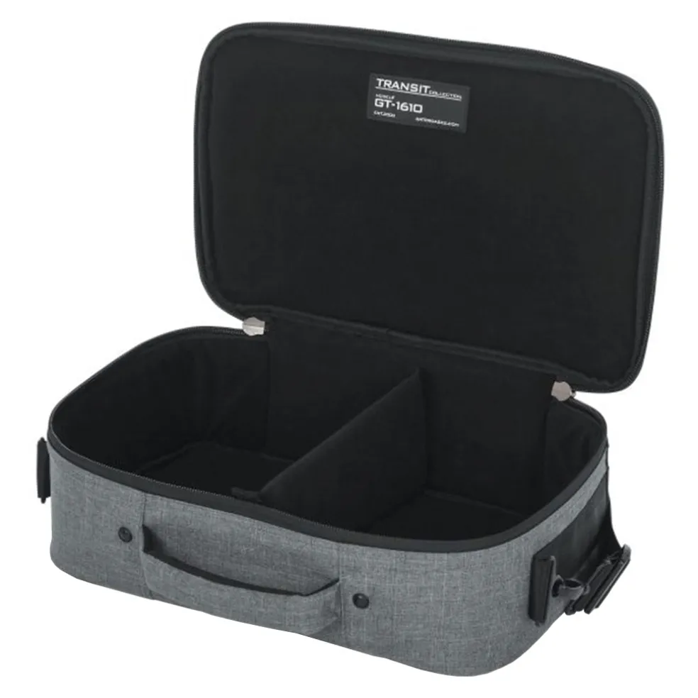 A grey Transit Series guitar gear and accessory bag with 16″ x 10″ x 4.5″ interior.