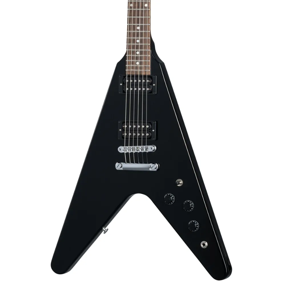 The Gibson Flying V™ is considered an iconic design by modern guitarists. It was first introduced in 1958, and in the following decades, it became increasingly popular, especially with hard rock and metal guitarists. For many of them, the 1980s is when the model really hit its stride. The Gibson 80s Flying V is based on the highly sought-after 1984 models. It features a fast-playing SlimTaper™ mahogany neck with a rosewood fretboard. The iconically-shaped mahogany body is outfitted with new 80s Tribute pickups that accurately capture the unique fat-toned sound and rich sustain of the models from that era. Now available in Ebony. A hardshell case is also included.