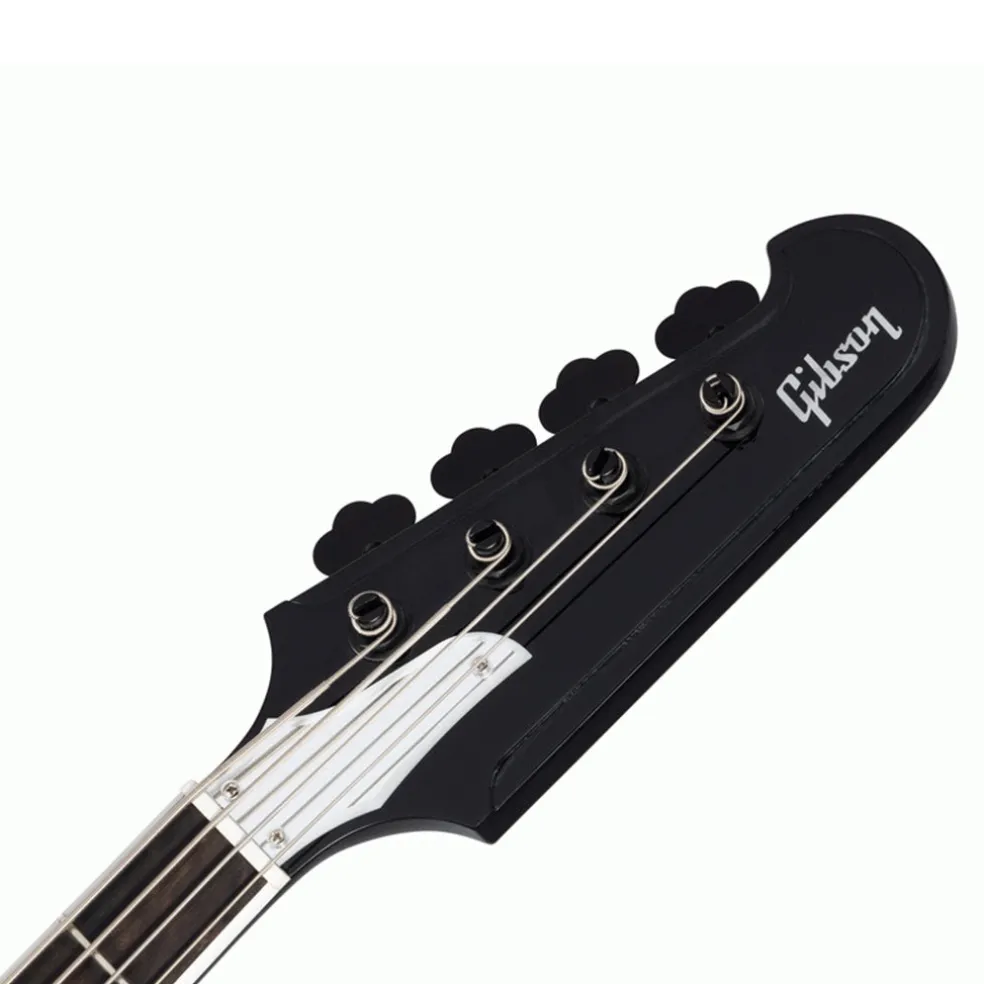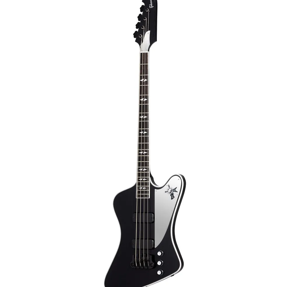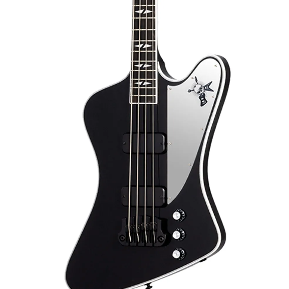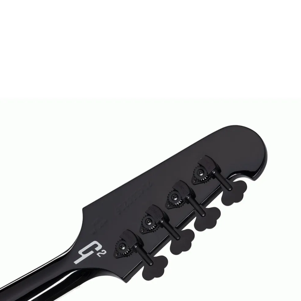 Gene Simmons is a legendary rock icon and the bassist from KISS, and his new Gibson Gene Simmons G2 Thunderbird Bass reflects his tastes. Designed to meet the musical needs of modern bassists, it features the classic Reverse Thunderbird™ body and headstock shape. The G2 Thunderbird Bass is voiced with a pair of powerful T-Bird pickups, each with individual Volume controls and paired with a master Tone control. The bound ebony fretboard features pearloid reverse split diamond inlays. A Graph Tech® nut and Hipshot® Mini Clover tuners keep the tuning rock-solid, while the other end of the strings anchor to a Hipshot® Bass Bridge. The back of the headstock features a G2 logo. The Ebony nitrocellulose lacquer finish is paired with Black Chrome hardware and a Mirror Plex truss rod cover and Mirror Plex pickguard with a laser engraved custom Gene Simmons logo. A modern hardshell case is included.