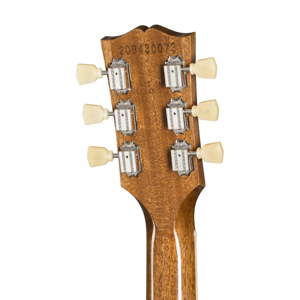 The new Les Paul Standard returns to the classic design that made it famous. It pays tribute to Gibson’s Golden Era of innovation and brings authenticity back to life. The Les Paul Standard 50s P-90 has a solid mahogany body with a maple top and a rounded 50s-style mahogany neck with a rosewood fingerboard and trapezoid inlays. It’s equipped with an ABR-1, the classic-style Tune-O-Maticâ„¢ bridge, an aluminium Stop Bar tailpiece, Vintage Deluxe tuners with Keystone buttons, and Top Hat knobs. The classic P-90 pickups (neck and bridge) are loaded with Alnico 5 magnets, audio taper potentiometers, and Orange Drop® capacitors.