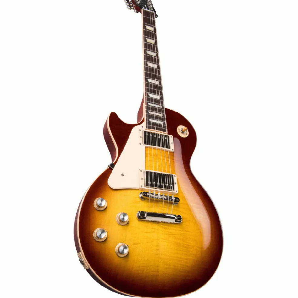 The new Les Paul Standard returns to the classic design that made it relevant, played and loved — shaping sound across generations and genres of music. It pays tribute to Gibsons Golden Era of innovation and brings authenticity back to life. The Les Paul Standard 60s has a solid mahogany body with an AA figured maple top, and a slim taper 60s-style mahogany neck with a rosewood fingerboard and trapezoid inlays. Its equipped with a classic-style Tune-O-Matic bridge, aluminum stop bar tailpiece, Grover Rotomatic Kidney tuners, and gold top hat knobs with silver reflectors. The Burstbucker 61R (neck) Burstbucker 61T (bridge) pickups are loaded with AlNiCo V magnets, audio taper potentiometers and orange drop capacitors.