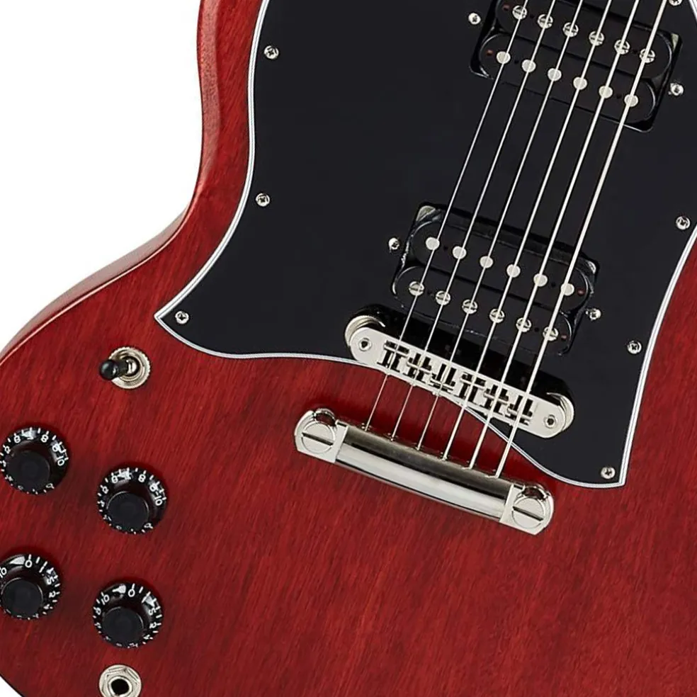The Gibson SG Tribute Satin Left-Handed Electric Guitar – Vintage Cherry brings the legendary SG tone and style to left-handed players with a no-frills, rock-ready design. Crafted with a mahogany body, a rounded profile maple neck, and a rosewood fingerboard, this guitar delivers classic sustain, punch, and playability. The vintage satin finish enhances the natural resonance of the wood while giving it a sleek, worn-in look.