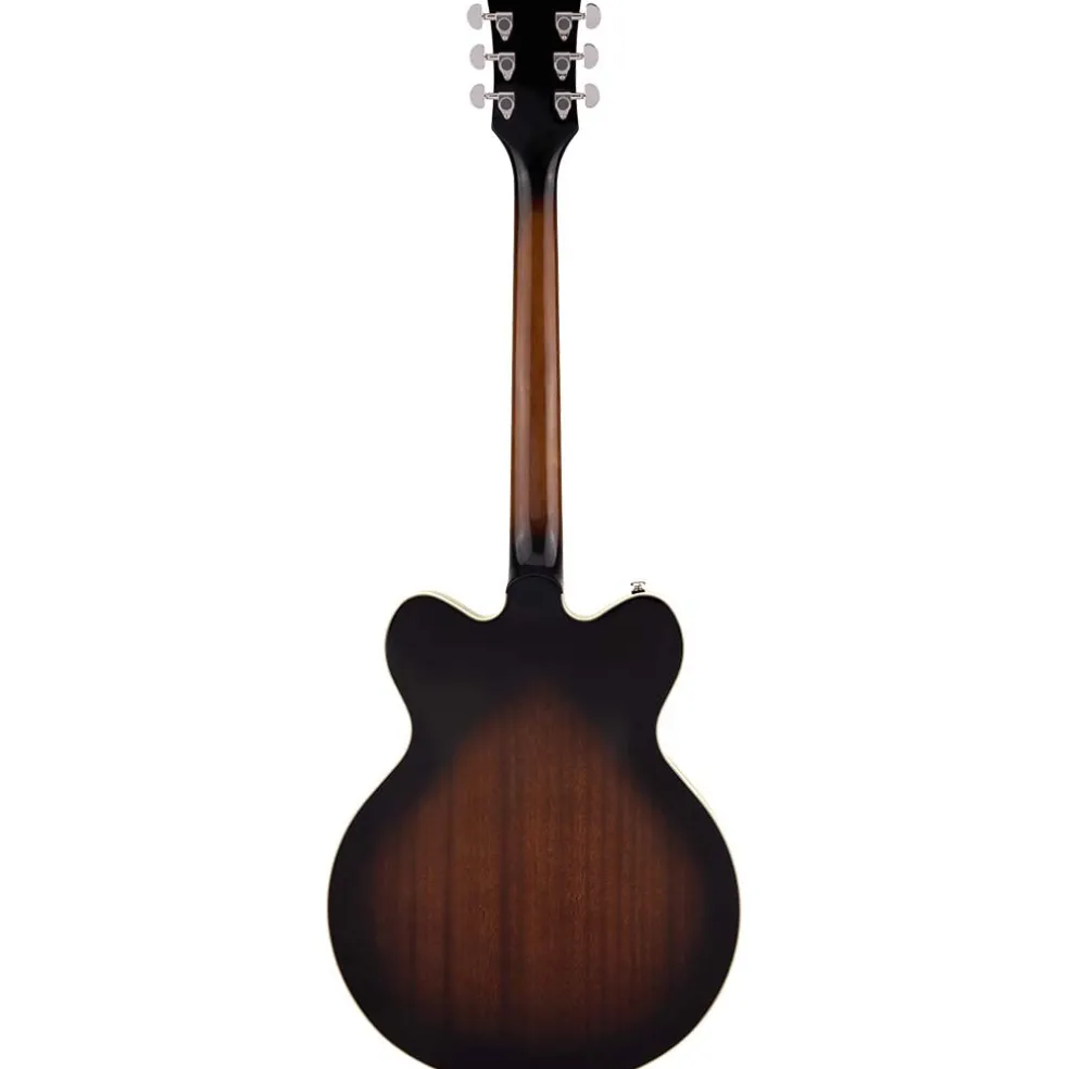 Classic ‘50s and ‘60s Gretsch eye-catching style is also here—all-new “radio arrow” control knobs, enlarged F-holes for increased acoustic projection, stylized pickup bezels, elegant aged white binding with upgraded purfling, black or tortoise pickguard, slick-looking nickel hardware and remarkable finishes including Brownstone, Forge Glow and Gunmetal.