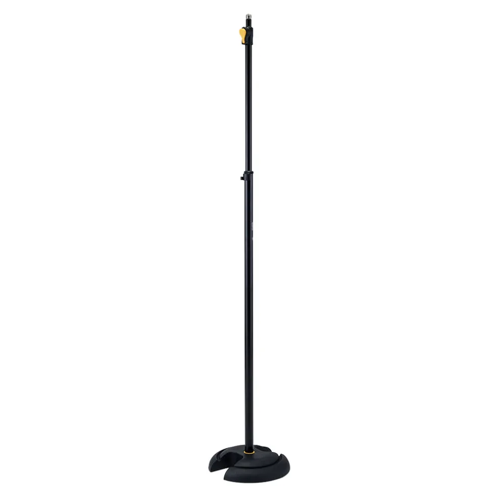 The HERCULES Mic Stand MS201B PLUS features the EZ Grip height adjustment, EZ Adaptor Flip Clip, and the weighted HERCULES H Base.
