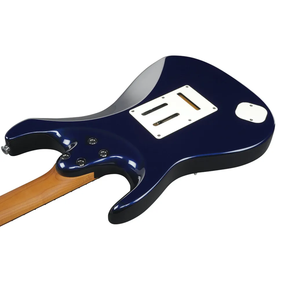 The Ibanez Prestige AZ2204NW solidbody electric guitar is a versatile instrument. Its Seymour Duncan Fortuna pickups can handle bluesy licks as well as metal riffage, and its dyna-MIX9 switching system offers nine different pickup combinations for an endless supply of tones. It also looks great, with a balanced-sounding alder body framed by a striking white pickguard. The ergonomic rear body contour, S-Tech roasted maple neck, and slick-playing compound-radius rosewood fingerboard provide unprecedented comfort and stability. The Gotoh T1702B tremolo on the AZ2204NW allows you to bend, twist, and dive-bomb with perfect intonation. The AZ2204NWs top-tier feature set includes Gotoh Magnum Lock tuners, an oil-impregnated bone nut, and Luminlay side dots.