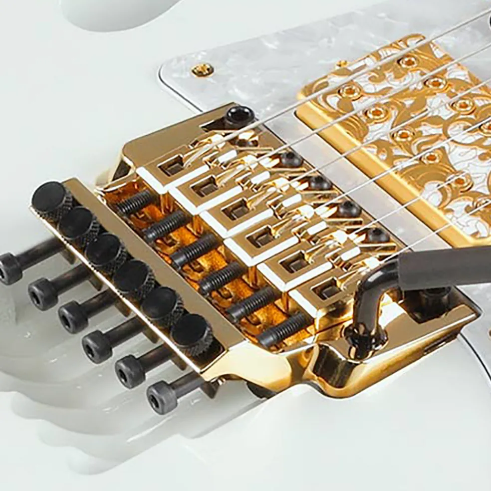 The newly designed PIA Blossom inlay is gorgeous, prominent, and elegantly imparts Steve Vai’s trademark style and artistic vision. Exclusively designed for the PIA, the new Petal Grip offers a balanced, contemporary design aesthetic. It’s also meant to symbolize unity, companionship, and interpersonal bonds. Based on Steve’s latest tonal preferences, DiMarzio UtoPIA pickups are voiced for smoother highs, more scooped mids, and more pronounced low-end. The pickups incorporate beautiful aesthetics and design elements meant to complement the cosmetic features of the guitar. The Edge tremolo bridge and groundbreaking Lions Claw tremolo cavity allow for rapidly increasing and lowering pitch with dramatic range and an intense voice. The tremolo cavity plate is held in place magnetically, allowing for quick removal and reinstallation when changing strings or adjusting the tremolo system.