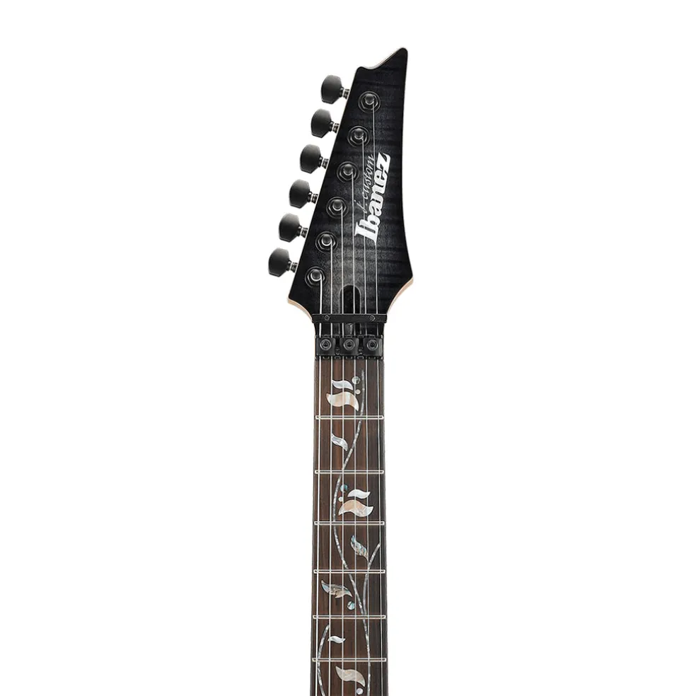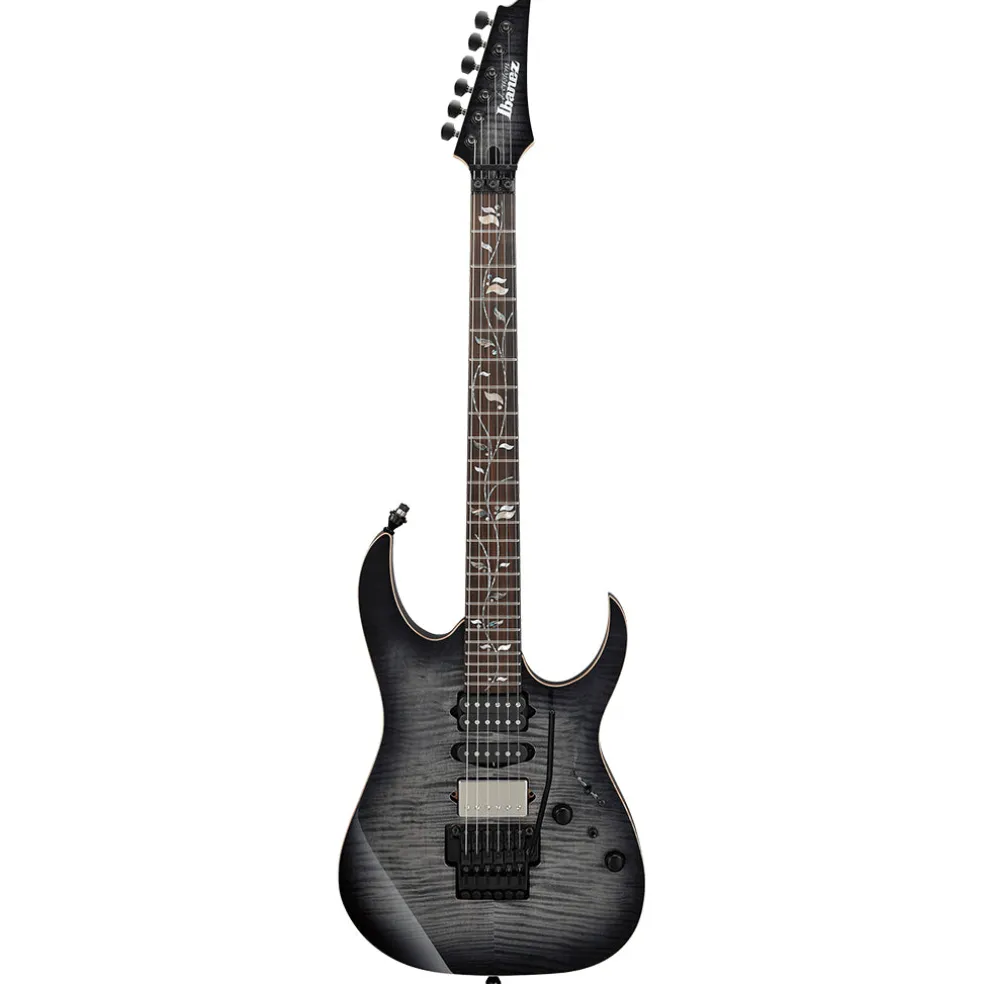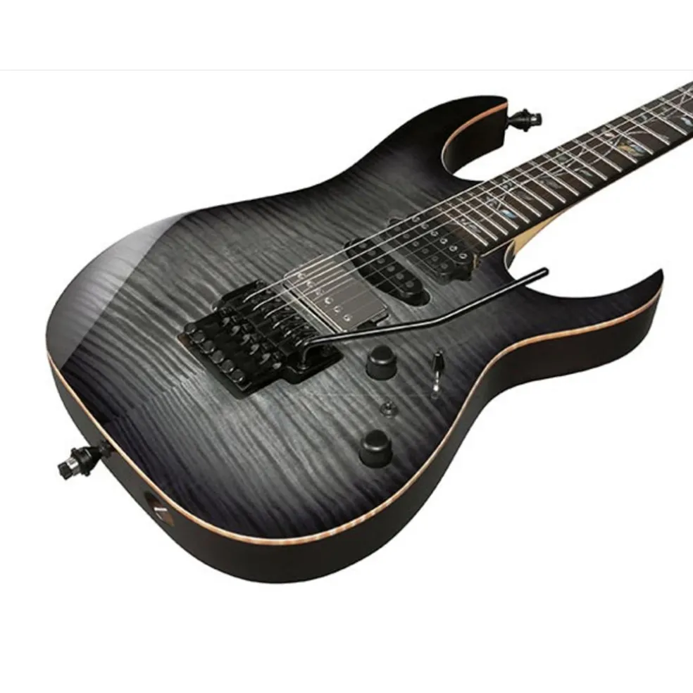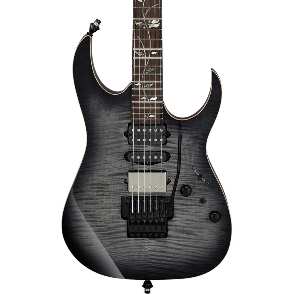 The RG8870 j.custom is built for speed and durability as part of the Ibanez lines most recognizable and distinctive guitar. Whether you prefer a fixed or hardtail bridge, the RG is a precision instrument with a flamed maple top and alder body paired to a special j.custom Super Wizard 5-piece maple/wenge neck for a comfortable, stable grip that makes sweeping and string skipping easier. This is topped with a fretboard made of Macassar ebony, which produces tight lows and mids as well as a strong attack in the highs.