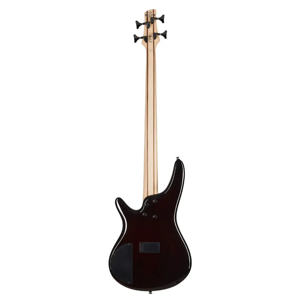 The Ibanez SR370EF BBT Electric Bass in Brown Burst finish features a Maple Body, 5-piece Maple/Walnut Neck with Jatoba Fretboard, White Dot Inlays, and PowerSpan Dual Coil Neck and Bridge Pickups.