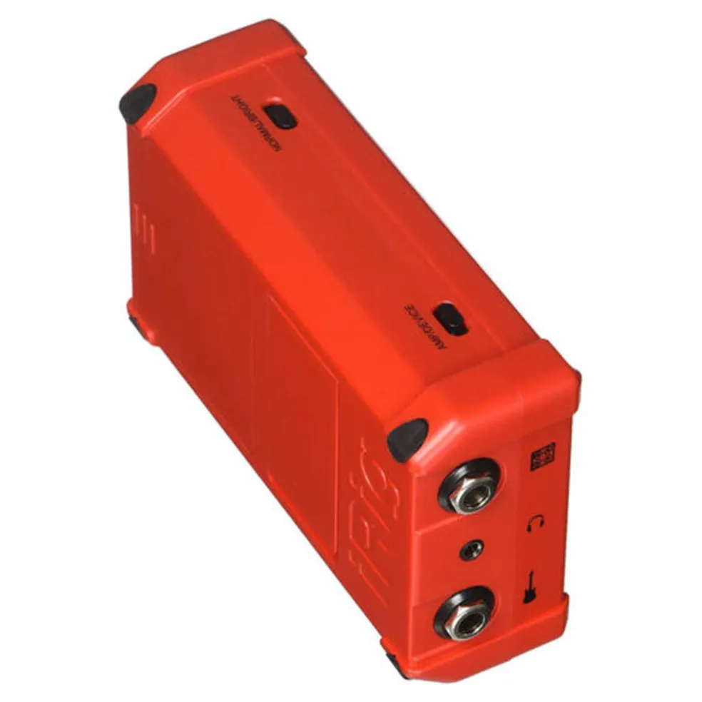 iRig Nano Amp operates as a straight up guitar amp and features a British tone stack circuit with gain and volume controls for practice on the go. Simply plug in your guitar to the 1/4 guitar input, adjust your volume and gain settings, select the output type NORMAL/BRIGHT and rock out anywhere you happen to be. The British tone circuit delivers sparkling clean tones at lower gain settings and a cascading wave of overdrive when cranking the gain to the upper limits.
