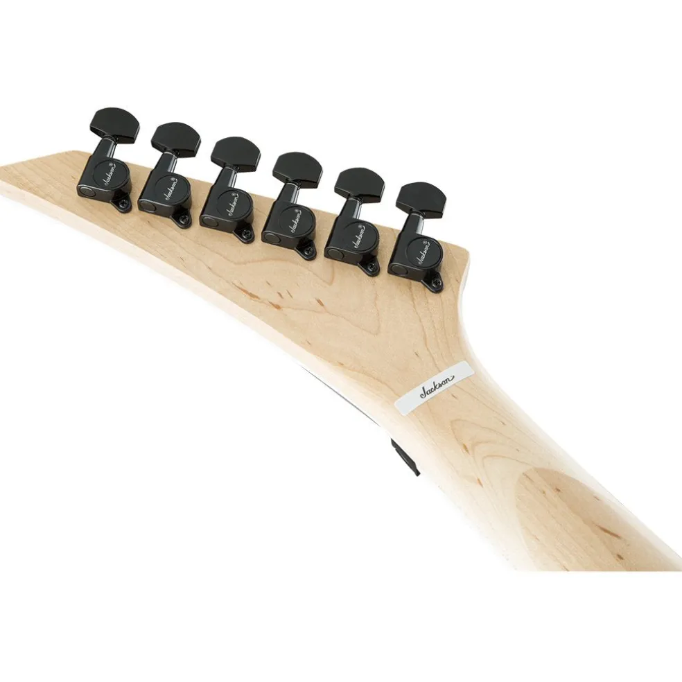 This formidable King V has a poplar body, bolt-on maple speed neck with graphite reinforcement and scarf joint for rock-solid stability. Its 12-16 compound radius bound amaranth fingerboard features 24 jumbo frets and pearloid sharkfin inlays. Other features include dual Jackson high-output humbucking pickups with ceramic magnets and three-way toggle switching, Jackson-branded Floyd Rose® double-locking tremolo bridge, standard strap buttons and sealed die-cast tuners.
