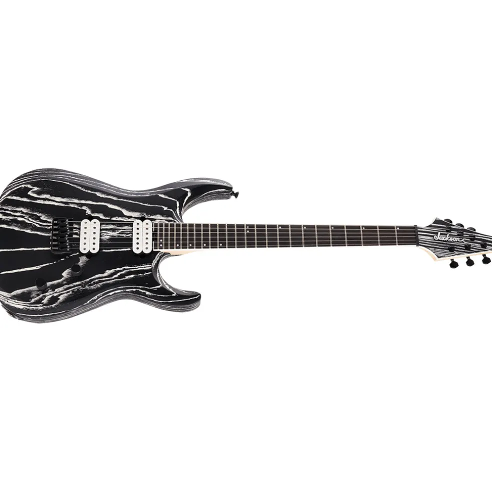 This modernized guitar also boasts unparalleled style with a sandblasted surface that highlights the ash wood grain and unique Baked Red or Baked White finish, complete with a reverse 3×3 AT-1 color matched headstock with white Jackson badge logo and black hardware.