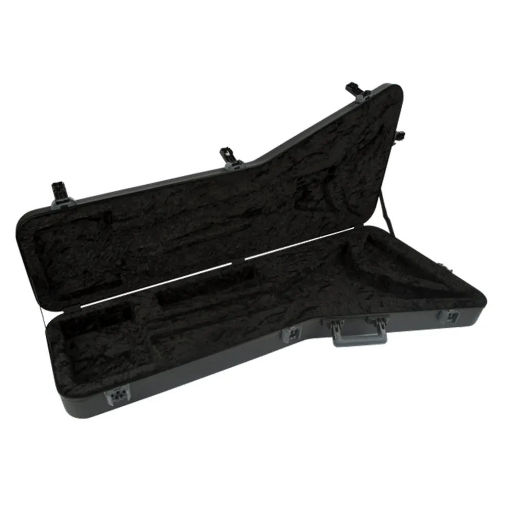 JacksonĀ® molded cases have been completely re-designed from scratch to provide the absolute best in guitar protection. Each case is specifically formed and shaped to fit all of the unique JacksonĀ® guitar shapes. This particular case is designed to fit akk right-handed RR 6 and 7-string models. It features 3 TSA approved latches, internal storage compartments, an embossed logo on the lid and a model identification plate.