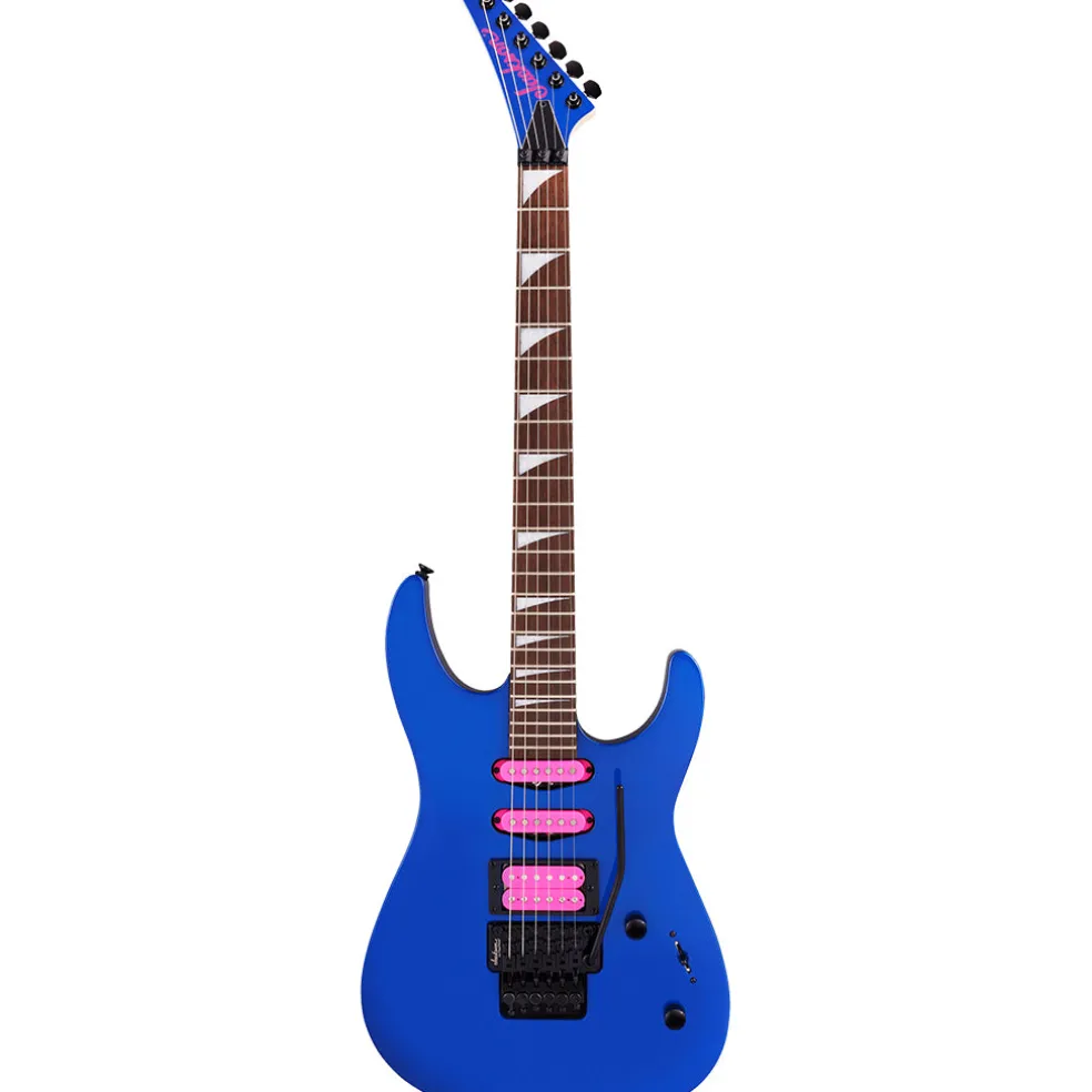 The Jackson® X Series Dinky™ DK3XR HSS provides the ultimate performance experience with features and appointments for the price-conscious musician. The DK3XR HSS features a poplar body with sculpted shredder’s cut heel for quick access to the upper frets and a bolt-on maple neck with satin back finish for smooth playability, scarf joint for reduced playing fatigue and graphite reinforcement for stability against climate changes and environmental duress. Featuring rolled edges, 24 jumbo frets and inverted pearloid sharkfin inlays, the 12-16 compound radius laurel fingerboard is the ideal platform for heavy chording and fast, ripping solos. Routed for an HSS configuration, the DK3XR is loaded with a select power trio of Jackson pickups. The Jackson high-output humbucking pickup was painstakingly voiced for full, rich tone with maximum overdrive and sustain, while the Jackson single-coil middle and neck pickups deliver that tried-and-true Strat sound. Explore this instrument’s sonic palette with a five-way blade switch and single volume and tone controls, and dive bomb at will with reliable tuning stability from the Jackson-branded Floyd Rose®-licensed double-locking tremolo bridge system. Captivating in both sound and style, the X Series Dinky DK3XR HSS is dressed in Gloss Black, Cobalt Blue and Neon Green with a color matched reverse Jackson pointed 6-in-line headstock and black hardware. The Gloss Black model also features white pickup bobbins and white Jackson headstock logo, while Cobalt Blue and Neon Green feature pink pickup bobbins and pink Jackson headstock logo.