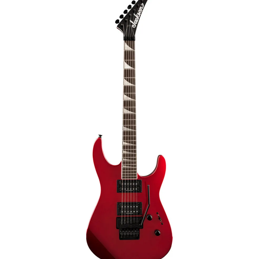 The SLX DX features a poplar body, through-body maple neck with graphite reinforcement and tilt-back scarf joint headstock. Sleek and deadly with Jackson’s signature pointed 6-in-line black headstock. Hosting 24 jumbo frets, its 12-16 fully bound compound radius laurel fingerboard curves more dramatically at the nut for easy chording and flattens out as it approaches the neck joint for low-action bends without fretting out.