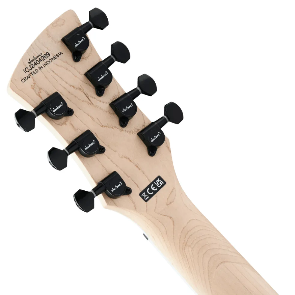 Simplicity reigns with a single volume control on this seven-string model. The Surfcaster also comes equipped with a Jackson’s robust hardtail bridge to keep tuning stable and setup perfect. Jackson has been pushing the boundaries of metal guitar design for over 40 years. The new X Series Surfcaster answers the prayers of modern metalheads, continuing the evolution with a sleek new take on this classic metal machine. Step into the fire and unleash your riffs with the X Series Surfcaster from Jackson.