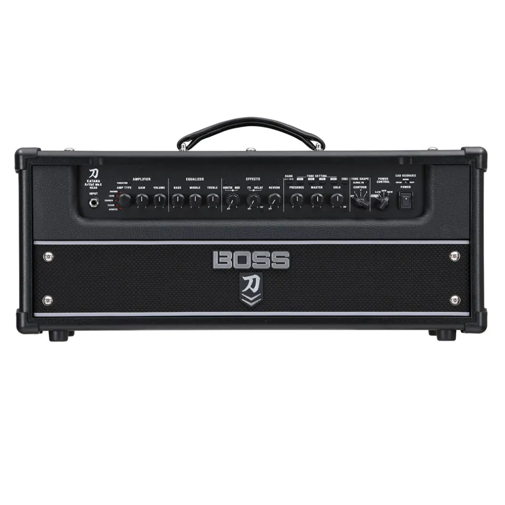 The Katana-Artist MkII Head brings you the premium sound and features of the flagship Katana-Artist MkII combo in a powerful 100-watt amplifier head. Cover any style with five amp characters and five variations, and color your tones with a wide range of onboard BOSS effects. Shape your voice with exclusive panel controls, including a three-way Contour switch, Global EQs, an adjustable Solo boost with dedicated delay, and five selectable Air Feel settings. And rock the stage with a roaring presence using the companion Katana Cabinet 212 Waza or your favorite external speaker cabs.