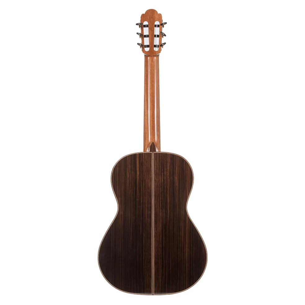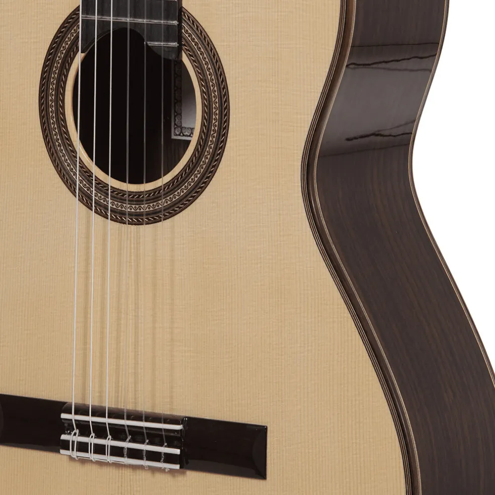 With its select solid spruce soundboard and beautiful solid rosewood back and sides, the MCG-150 is a beautiful instrument. Based on the Hauser design this guitar is even, very well balanced and with all the resonances and overtones under control. A very playable guitar with pure tones and one with will leave the player with plenty of scope to add colour. Comes with an excellent hard case.
