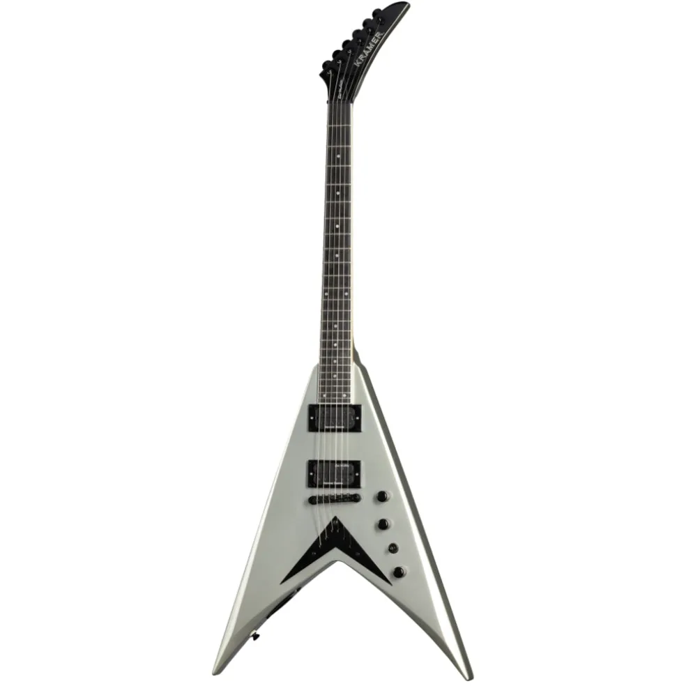 Kramer is stoked to welcome Dave Mustaine, the legendary guitarist, vocalist, songwriter, and founder of the multi-platinum selling and Grammy® Award-winning band, MEGADETH, to the Kramer Artist lineup. The Kramer Dave Mustaine Vanguard delivers the powerful, heavy sounds and exceptional playing performance on the stage and in the studio that Dave demands. It is equipped with a symmetrical mahogany Vanguard body, a 25.5” scale mahogany neck with a medium C Dave Mustaine custom profile, an ebony fretboard with 24 jumbo frets, black chrome hardware, and Dave Mustaine’s signature Seymour Duncan® Thrash Factor pickup set. Available in Ebony and Silver Metallic, a custom Dave Mustaine hardshell case is also included.