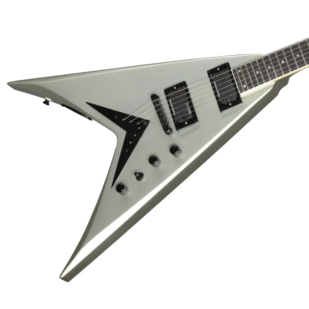 - Asymmetrical “V”-shaped mahogany body provides ergonomic comfort and stage-ready aesthetics