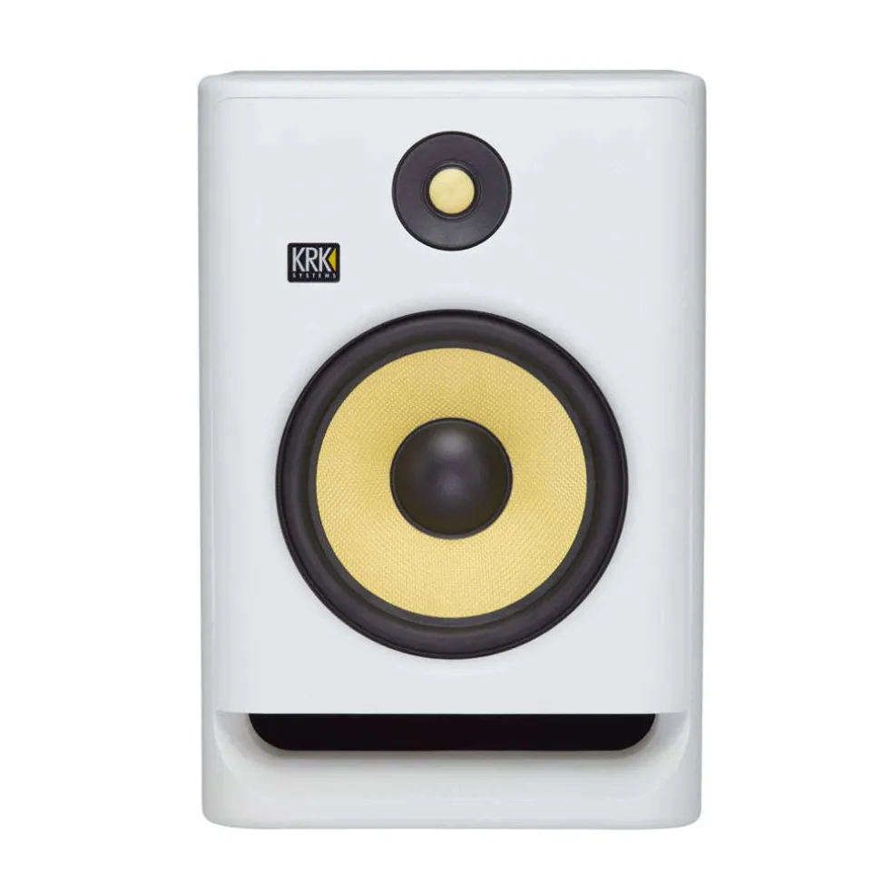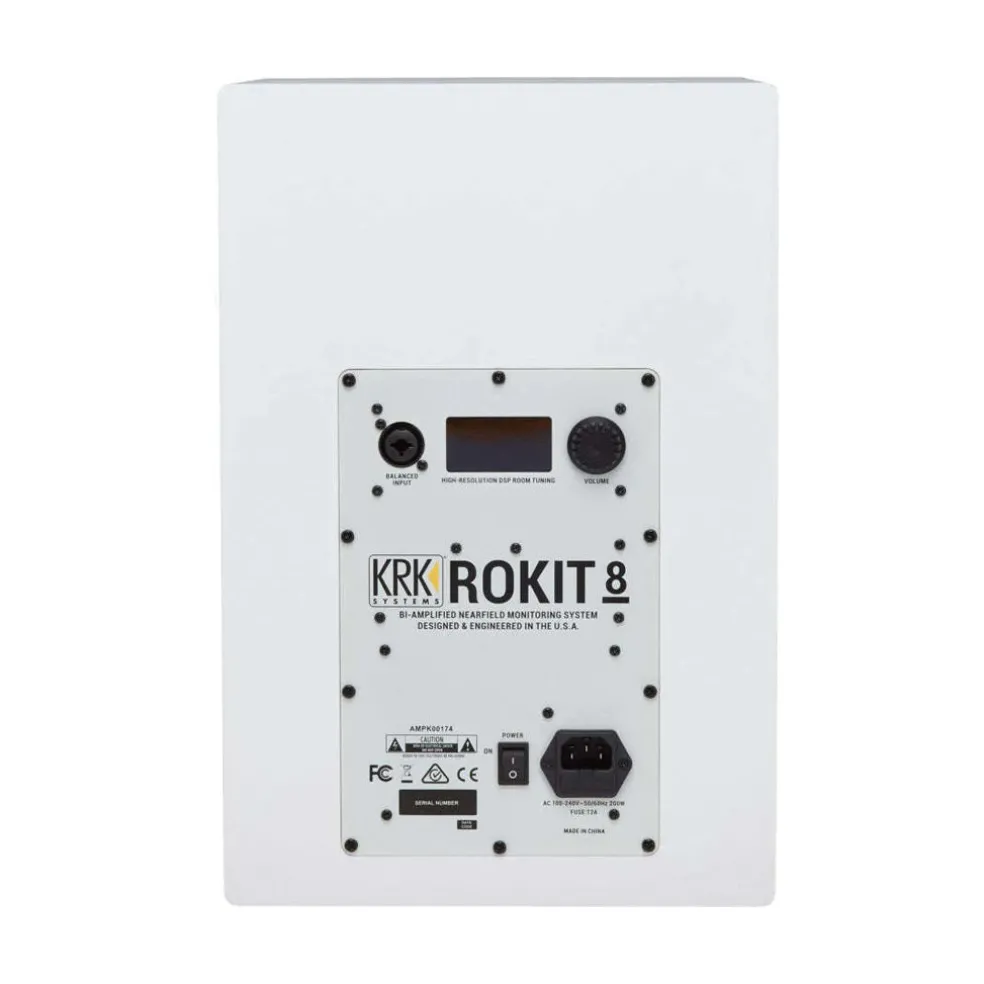 The new 8 KRK ROKIT RP8 G4 (Generation 4) bi-amp professional monitor takes music and sound creativity to a whole new industry-level.DSP-driven Graphic EQ with 25 settings help condition your acoustic environment while offering new levels of versatility in a studio monitor. Matching drivers made with Kevlar® ensures the same sonic integrity across all frequencies. A new scientifically designed speaker enclosure and front-firing port offer exceptional low-end extension and accuracy, punch and flexible room-positioning. The new powerful, yet efficient custom Class D power amplifier drives the speakers evenly and more efficiently at reduced operating temperatures and improves audio integrity.
