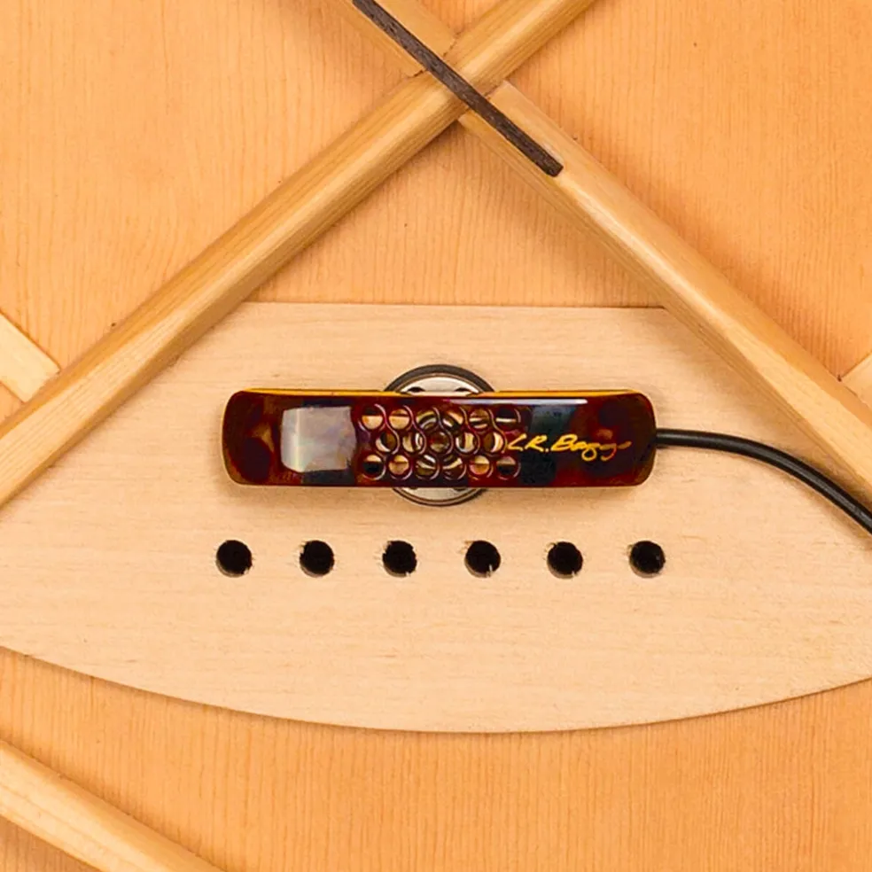 Our featherweight microphone, each high-graded for ideal response, mounts to the underside of the bridge plate with simple peel-and-stick adhesive to preserve the integrity of your instrument. The microphone leverages the “pressure-zone” principle by positioning the capsule just 3mm from the surface of the top to hear the entire soundboard for even balance and tone. And the microphone’s proximity to the top allows high gain before feedback. Unlike other attempts to use an internal microphone, Lyric employs noise canceling technology that rejects “boxy” reflections inside of the acoustic chamber. This patented minor miracle enables the mic to act as if it were outside of the guitar delivering a clear and open performance.