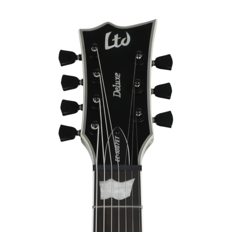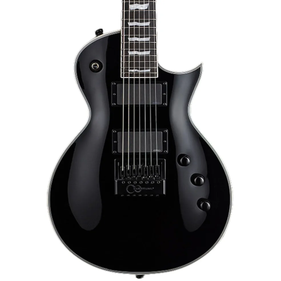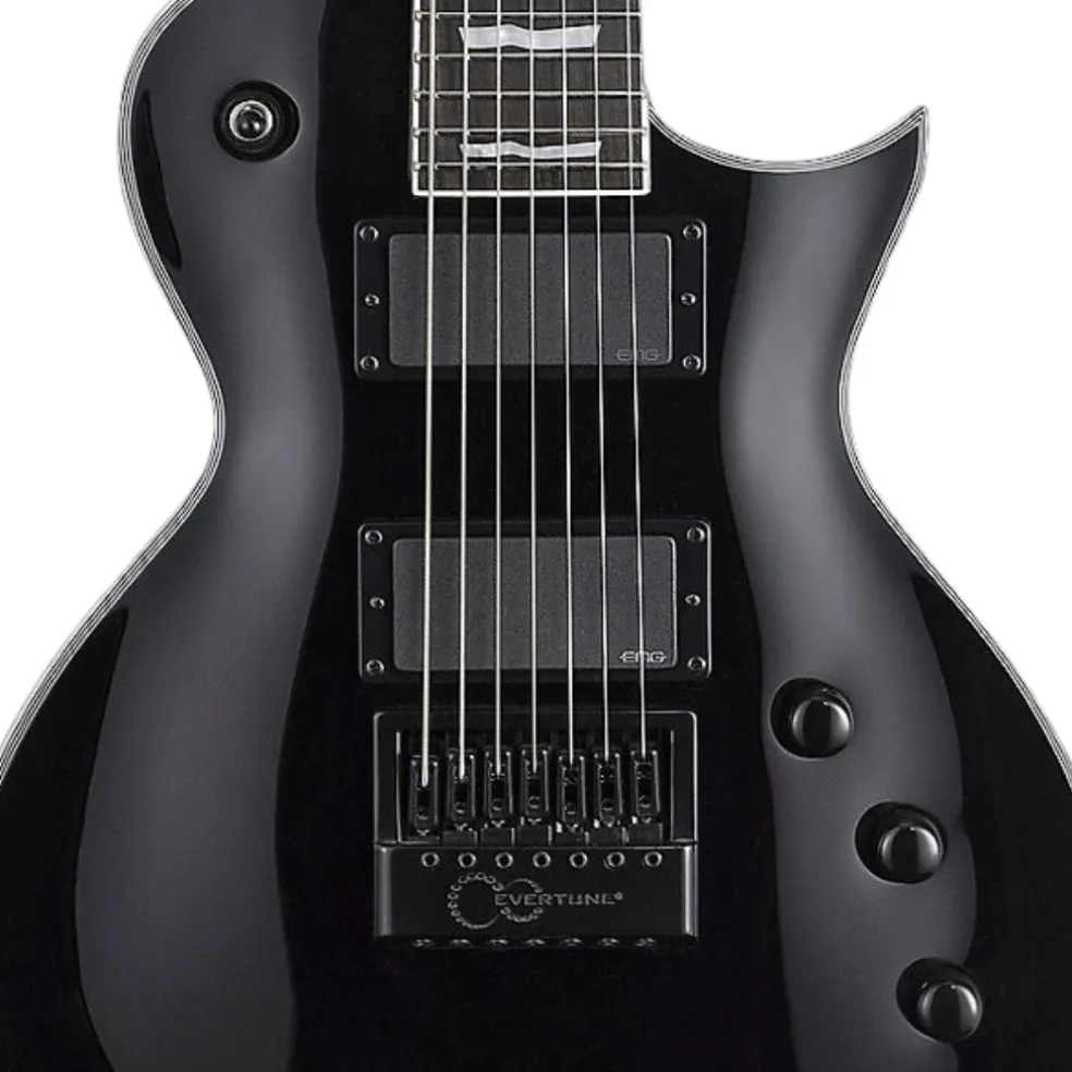 With the EC-1007 EverTune, you get an extended range guitar that’s designed to meet the highest standards of quality for professional recording and touring needs. It features the acclaimed EverTune constant tension bridge system, keeping this seven-string guitar in perfect tuning and intonation at all points on the neck under nearly every imaginable environment. The EC-1007 EverTune is based on the single-cutaway ESP Eclipse body shape, with excellent comfort and playability for live shows, and features EMG 81-7H/60-7H pickup set. Available in Black finish. EverTune BRIDGE SETUP