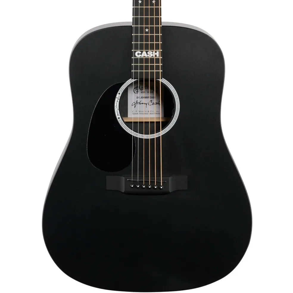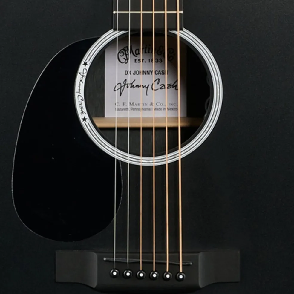 In the early 1970s, Martin Guitar was commissioned to design an all-black lacquered D-35 for country star Johnny Cash. Though Martin had never considered such a request before, an all-black D-35 for the “Man in Black” was custom-made. Cash went on to play his custom D-35 on stage for the next 20 years. In 2006, Martin released a commemorative D-35 Johnny Cash edition. New for 2019, the DX Johnny Cash is a nod to the history between Cash and Martin Guitar. Designed in collaboration with John Carter Cash and the Cash Foundation management team, the guitar features a classic Dreadnought body shape constructed with Jett black high-pressure laminate (HPL) top, back and sides. Like the earlier commemorative edition, this instrument includes a custom fingerboard inlaid with stars and the “CASH” logo. Johnny Cash’s signature appears on the rosette and label. This model comes with Fishman® MX electronics and a soft gig bag embroidered with the “CASH” logo and is strung with Martin’s Authentic Acoustic Lifespan® 2.0 strings. The DX Johnny Cash was designed to be an accessible and playable guitar for anyone looking to honor the legacy of the legendary musician.