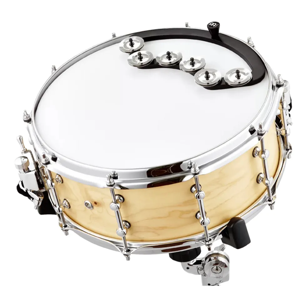 Place the MEINL Backbeat Tambourine directly on your drum head to really turn up the groove! The stainless steel jingles respond fully when the drum is struck, and the frame is designed to rest naturally against the inside of any standard drum hoop. Great for snare drums, timbales, and tom toms.