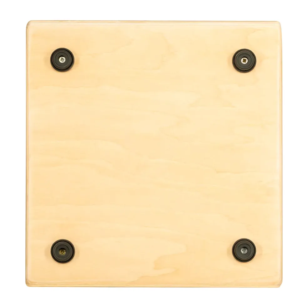 The MEINL Jam Cajon with fixed internal snares is perfect for playing on the go. Its compact design is lightweight and easy to carry to drum circles or acoustic gigs. Crafted in Europe from Baltic birch wood, the Jam Cajon has great low end punch when played near the center and dishes out snare drum slap sounds when striking the top corners of the playing surface. The dual internal snares are fitted to rest against the inside of the frontplate for a sensitive response. These sounds are perfect for providing the rhythmic foundation for acoustic music.