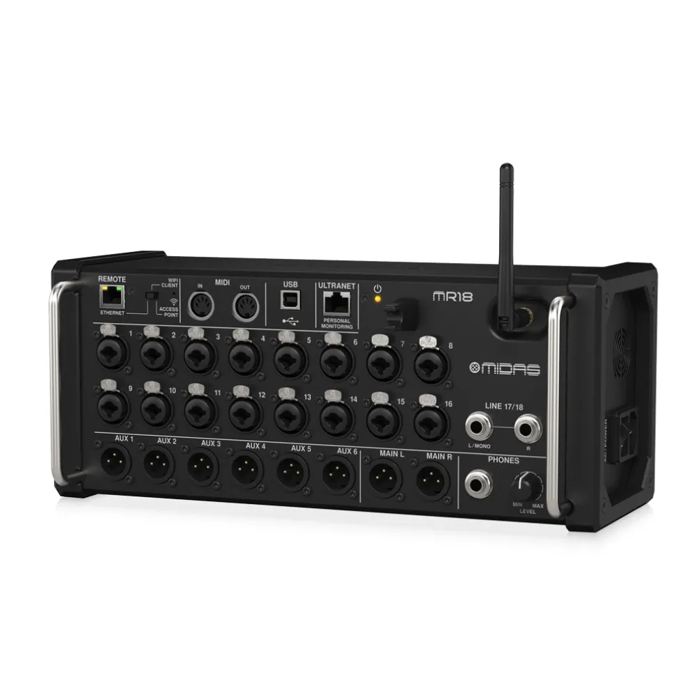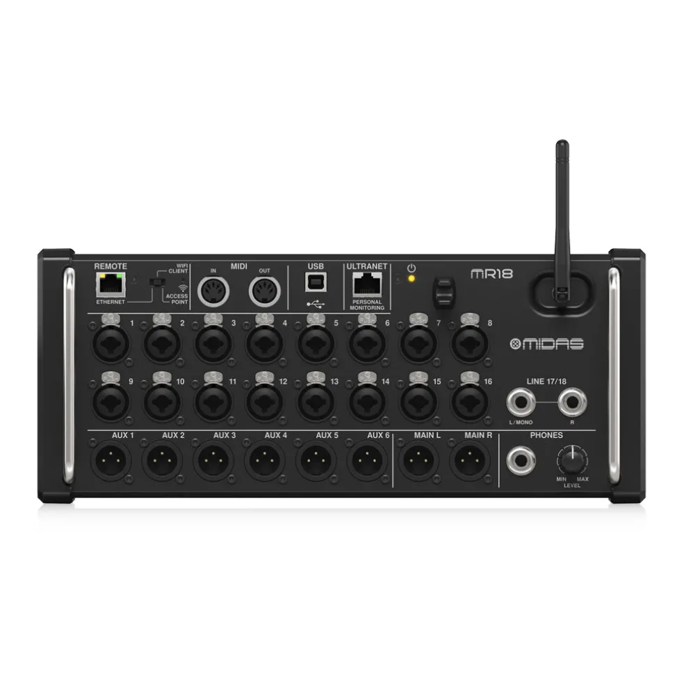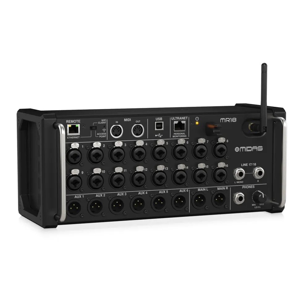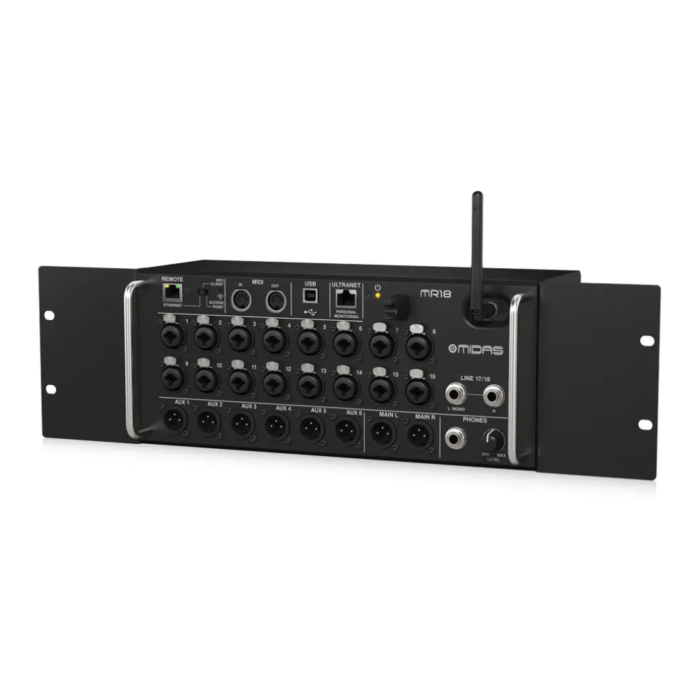 The Midas M32 completely redefined what is possible from a digital mixer – and thousands of users are enjoying the results. Now that technology has been incorporated into the small but powerful MR18 rack-mountable mixer, which will forever change the way you record and the way you play live music.