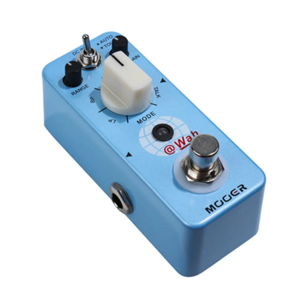 @WAH brings together 4 very different Wah sounds and a cool Talk effect into one small pedal. It has two main modes of operation; Auto which is time based and Touch which responds to the dynamics of the musicians instrument. The 3 controls provide great manipulation of the tonal qualities of the pedal.
