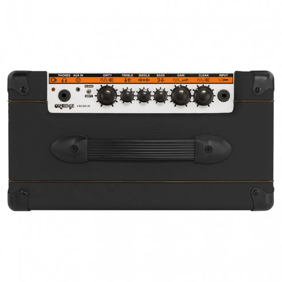 The twin channel Crush 20 takes an uncompromising approach to guitar tone and puts it in a compact and portable package. With footswitchable Clean and Dirty channels our new high gain, four stage preamp design serves up a huge palette of overdriven and distorted sounds, rich in harmonic overtones.