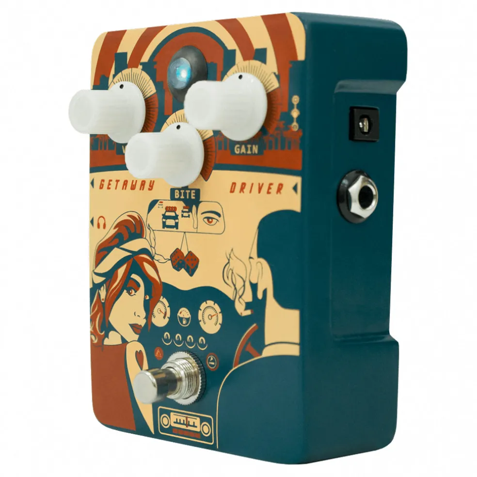 The Getaway Driver is an amp-in-a-box type pedal with just three dials – Volume, Bite (tone) and Gain. While the pedal adds its vintage vibe on all amplifiers, it really excels when used with the amplifier’s clean channel, even ones with a bright cap. It also makes a great clean boost, with low Gain and high Volume pushing amps over the edge into classic overdrive.