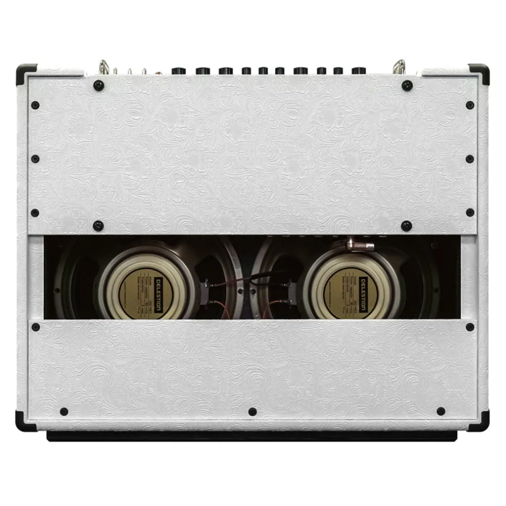 Designed and built by Orange UK in collaboration with celebrated guitarist and solo artist Orianthi—the all-new Oriverb is born. This signature combo is inspired by the popular Rockerverb MKIII 50 NEO Combo, and has been voiced to capture her “dream tone” as well as an elegant, timeless look. The 2×12 combo is fitted with a pair of Celestion Creambacks and EL34 valves to produce that undeniable British amp flavour while offering ample versatility that can conquer a wide variety of playing situations.