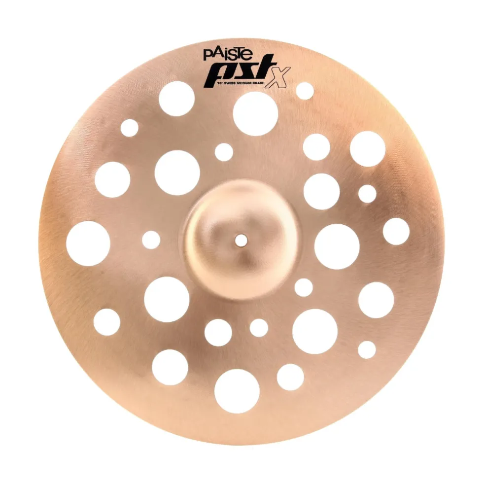 PSTX is a complete collection of extremely affordable effect cymbals. The core of the PSTX is made up of the Swiss models, cymbals that achieve a noisy, dirty, trashy sound quality by the use of specific layouts and varied sizes for the holes. Their silky surface distinguishes the cymbals visually. The aluminum Pure Bells stand out due to their distinct character and concept.