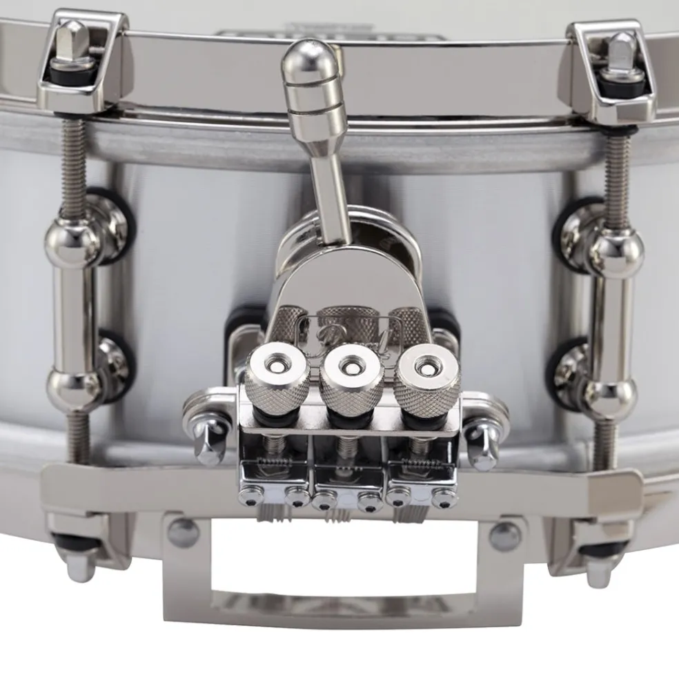 Cast Aluminum shell snare drum is one of the thickest metal drums you’ll find. Aluminum is a relatively soft metal and provides the warm, round, full-bodied resonance of a wood shell snare. However, it also possesses the snap, volume, and projection provided by a metal snare. No other concert snare drum can offer this perfect compromise between wood and metal. Since the Philharmonic PHA is a milled cast aluminum shell, its bearing edges are precision-cut and perfect every time.
