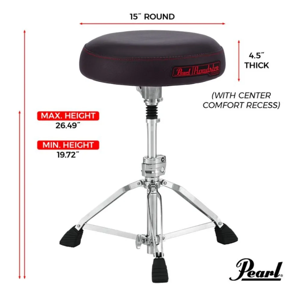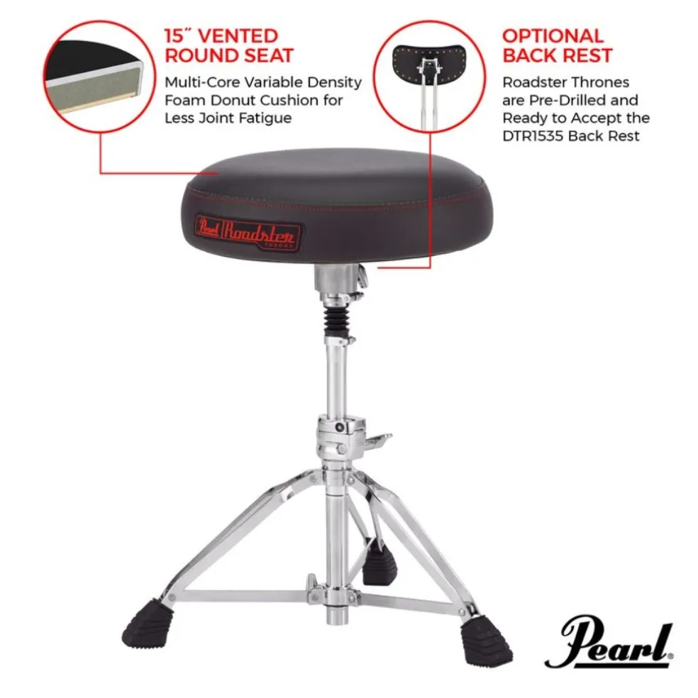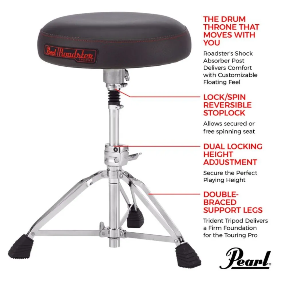Essential for extended and efficient performance, Pearl Roadster thrones feature advanced ergonomic design and a selection of computer-tempered cushion tops to provide support and ease joint pressure during long sessions. The D1500SP features a donut shaped Multi-Core Foam cushion, with multiple layers of varied density foam for better playing and improved feel. Its durable tripod includes Pearl’s adjustable Shock Absorber post for outstanding support and balance, and out exclusive Lock/Spin System allows the cushion to be secured in place or free spinning depending on preference.