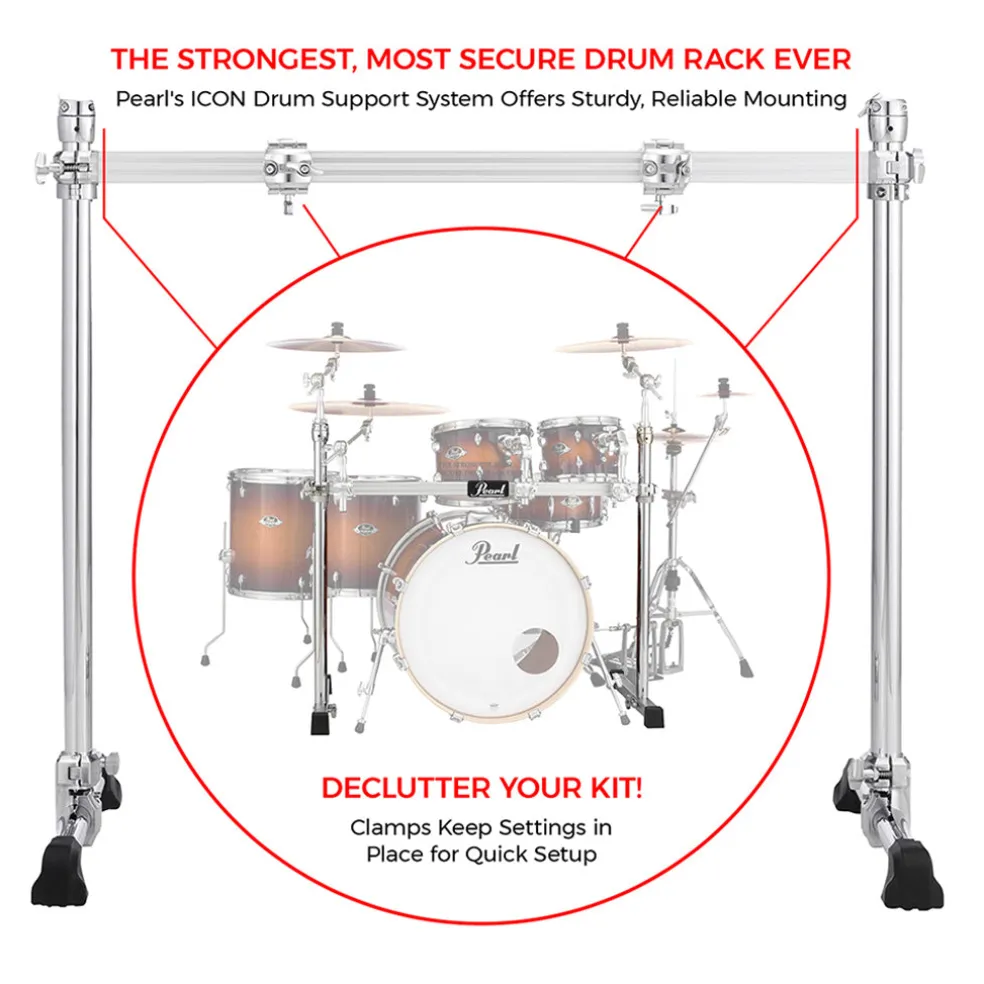 From the originator of the frame-based drum support system comes Pearl’s Icon Single Drum Rack. Exceptional for bridging items over bass drums, the Icon Single Rack is the basic building foundation for the complete Icon Rack system, a completely modular, expandable, and customizable drum mounting platform.