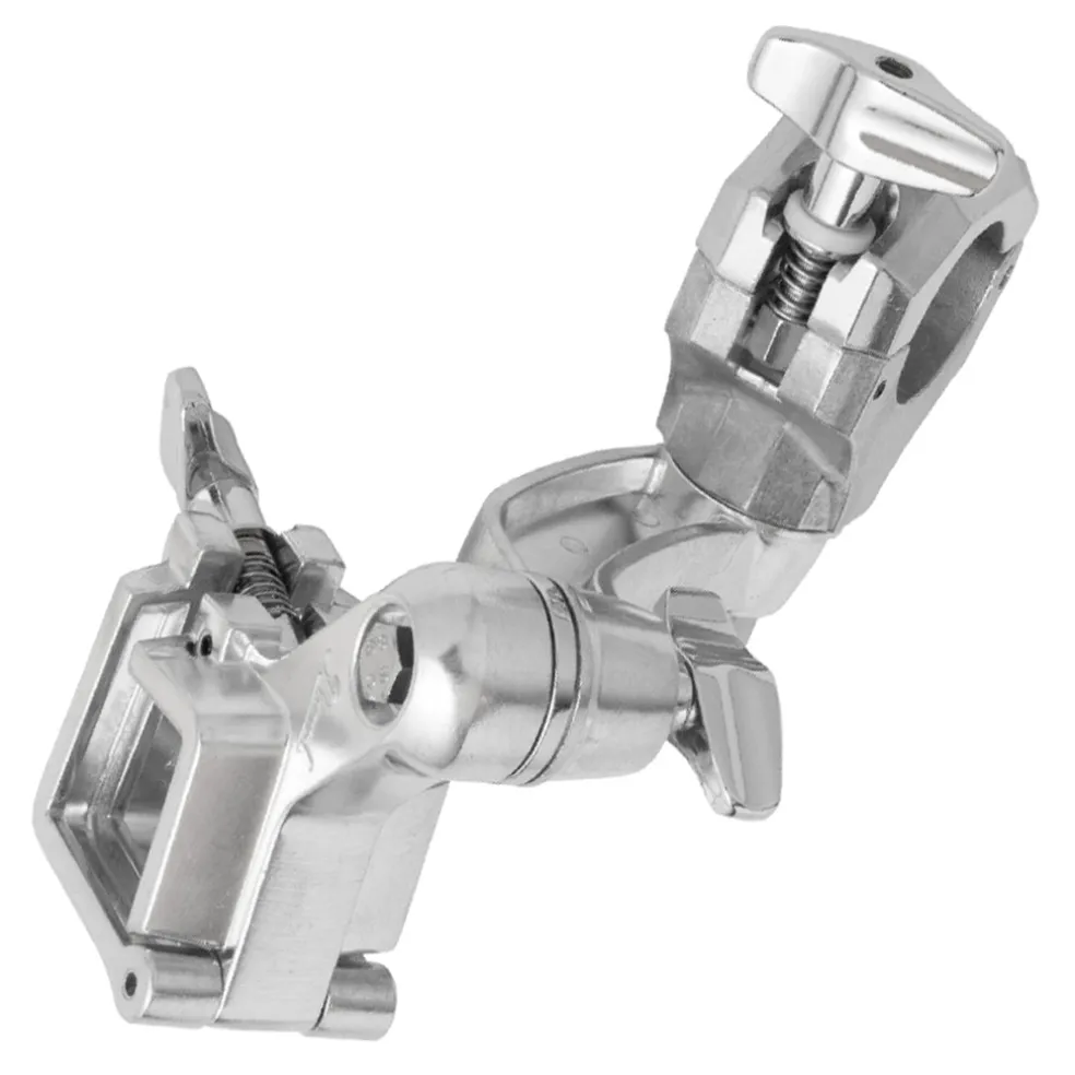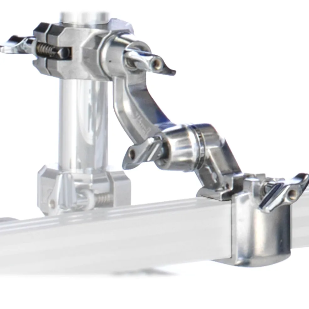 With clamps for Pearl’s exclusive square rail and standard 1.5 round pipe, the center joint lets you rotate each support bar independently at two different angles.