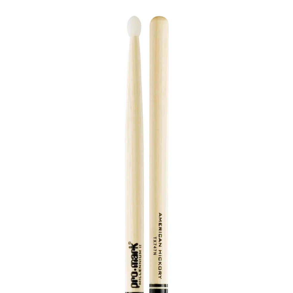 The Promark 747 drumstick is a perfect choice when you need more volume, featuring a nylon tip for a brighter, more-articulate sound. This drumstick features the standard 5A diameter, but is longer and contains a thicker taper.