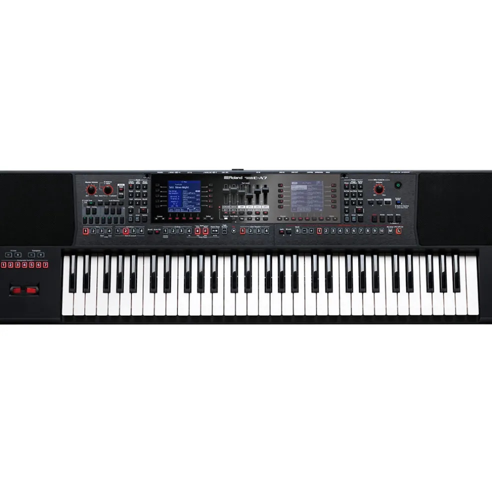 The E-A7 is a versatile arranger keyboard for musicians needing professional sounds and authentic backing styles from all over the world. Using the E-A7 is fast and intuitive thanks to its logical dual-screen layout—styles on the left and sounds on the right, with most options having dedicated, quick-access buttons. You can import WAV files to create your own instruments, or even sample directly from the keyboard. And with the powerful E-A7 Tone Manager software, you can use your computer to edit and organize user tones and drum kits, work with samples, and more. Singers will appreciate the microphone input with dedicated vocal effects, while the whole keyboard is easy to gig with, weighing in at just 8 kg/18 lbs. Wherever you’re going with your music, the E-A7 will help you get there.